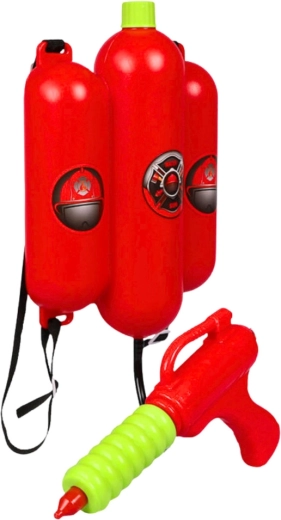 Setul este realizat din plastic rezistent, fără margini ascuțite, are bretelii reglabile și un furtun practic ce unește rezervoarele cu pistolul. Ideal pentru joaca de vară, jocuri tematice de-a pompierii și ca accesoriu pentru costum.
