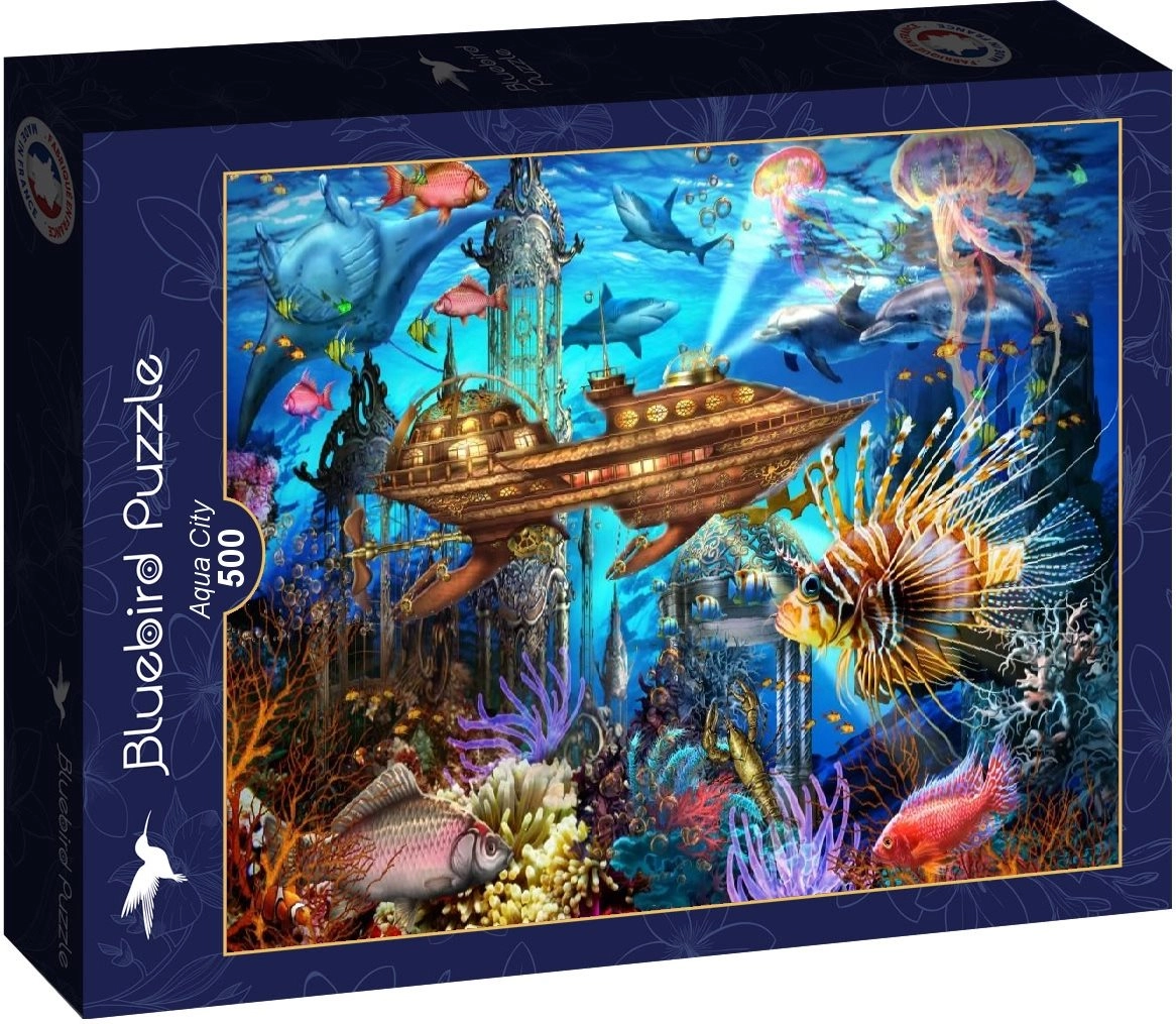Descoperă farmecul adâncurilor oceanice cu puzzle-ul Oraș Subacvatic de la BLUEBIRD. Cu 500 de piese, oferă o ilustrație impresionantă, plină de detalii și motive fantastice, ideală pentru relaxare și antrenarea concentrării. Puzzle-ul final are dimensiunea de 47,8 × 34,2 cm, perfect pentru înrămare și expunere.
