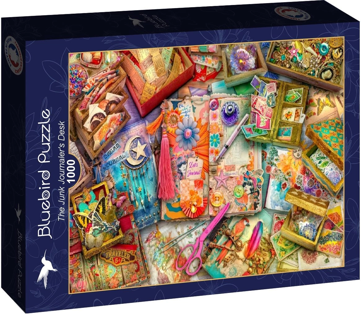 Bucură-te de relaxare cu un puzzle de calitate de la Bluebird. Motivul Masa creatorului de jurnale oferă numeroase detalii și elemente colorate care îi vor încânta pe toți iubitorii de puzzle-uri. Pachetul conține 1000 de piese, iar după asamblare formează o imagine de aproximativ 69 × 47,8 cm – ideală pentru înrămare sau reasamblare repetată.