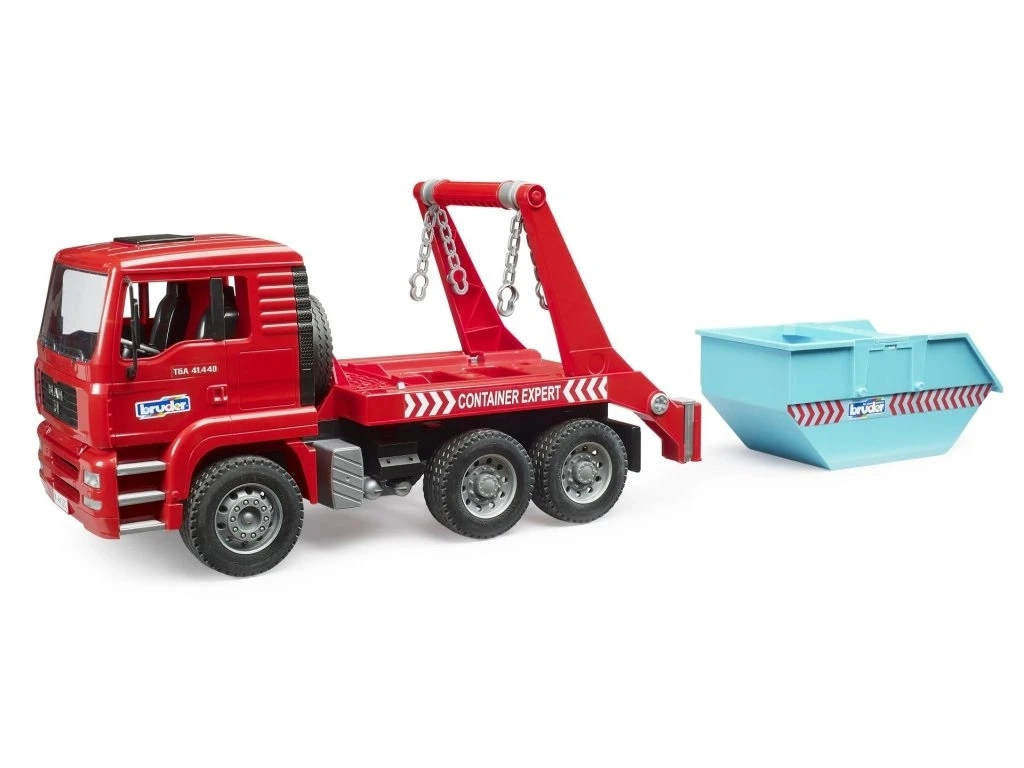 Sistemul practic cu lanțuri permite încărcarea sau depunerea ușoară a containerului, astfel încât vehiculul poate porni imediat către următoarea „lucrare”. Perfect pentru un joc dinamic pe șantier.