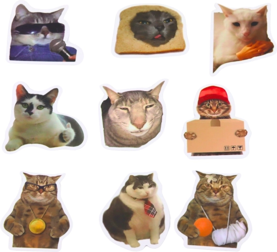 Până la 50 de designuri diferite de meme cu pisici într-un singur pachet – combină, lipește, suprapune și creează fără limite.