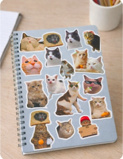 Iubești pisicile și umorul? Acest set universal de autocolante decorative cu pisici din meme transformă orice obiect într-un original. Datorită designurilor variate vei crea compoziții unice pe agende, jurnale, telefoane sau cadouri. Finisajul foto lucios arată grozav pe suprafețe deschise și închise.