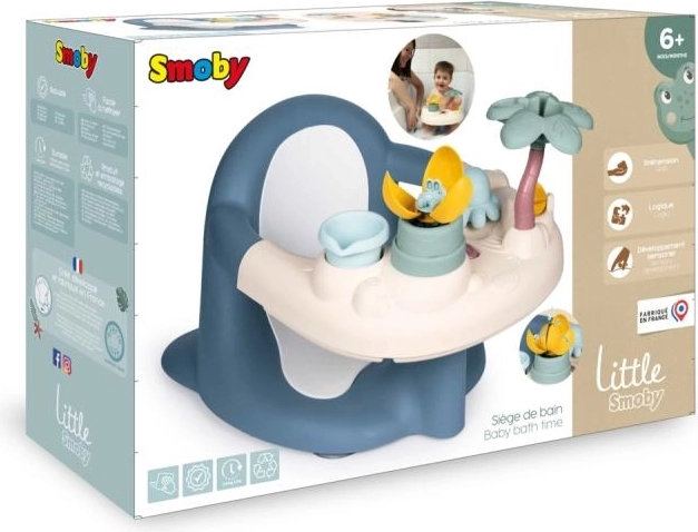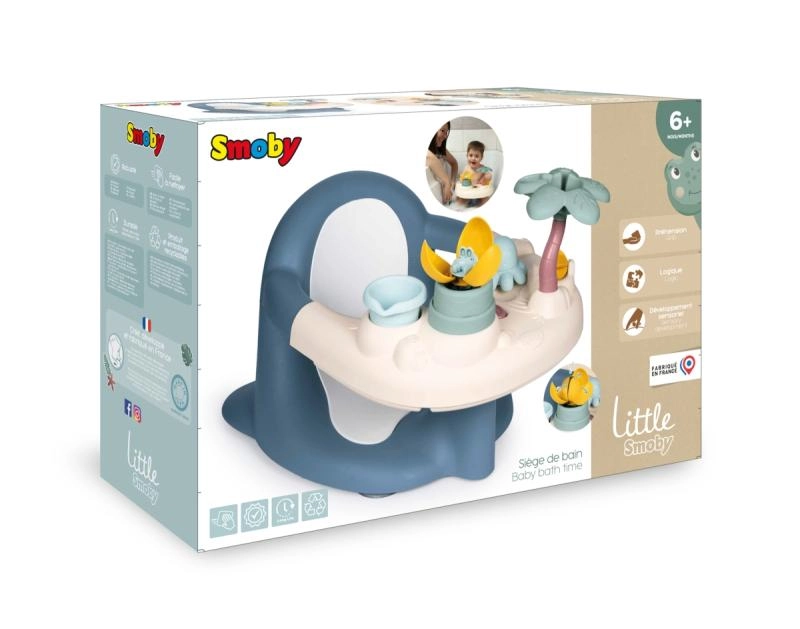Include un panou de joacă interactiv cu 5 activități acvatice, care stimulează simțurile și motricitatea fină: moară de apă, pahar pentru turnat, pulverizator în formă de palmier, floare „magică” și caracatiță care stropește apă. Patru ventuze puternice fixează ferm scăunelul pe fundul căzii pentru stabilitate maximă. Fabricat în Franța.