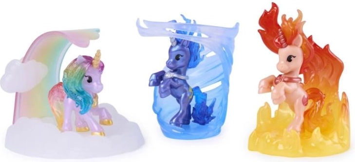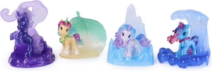 Fiecare figurină stă pe un suport unic, translucid – val, foc, gheață, vânt, frunze sau nori curcubeu oferă vitrinei tale un efect magic și stabilitate.