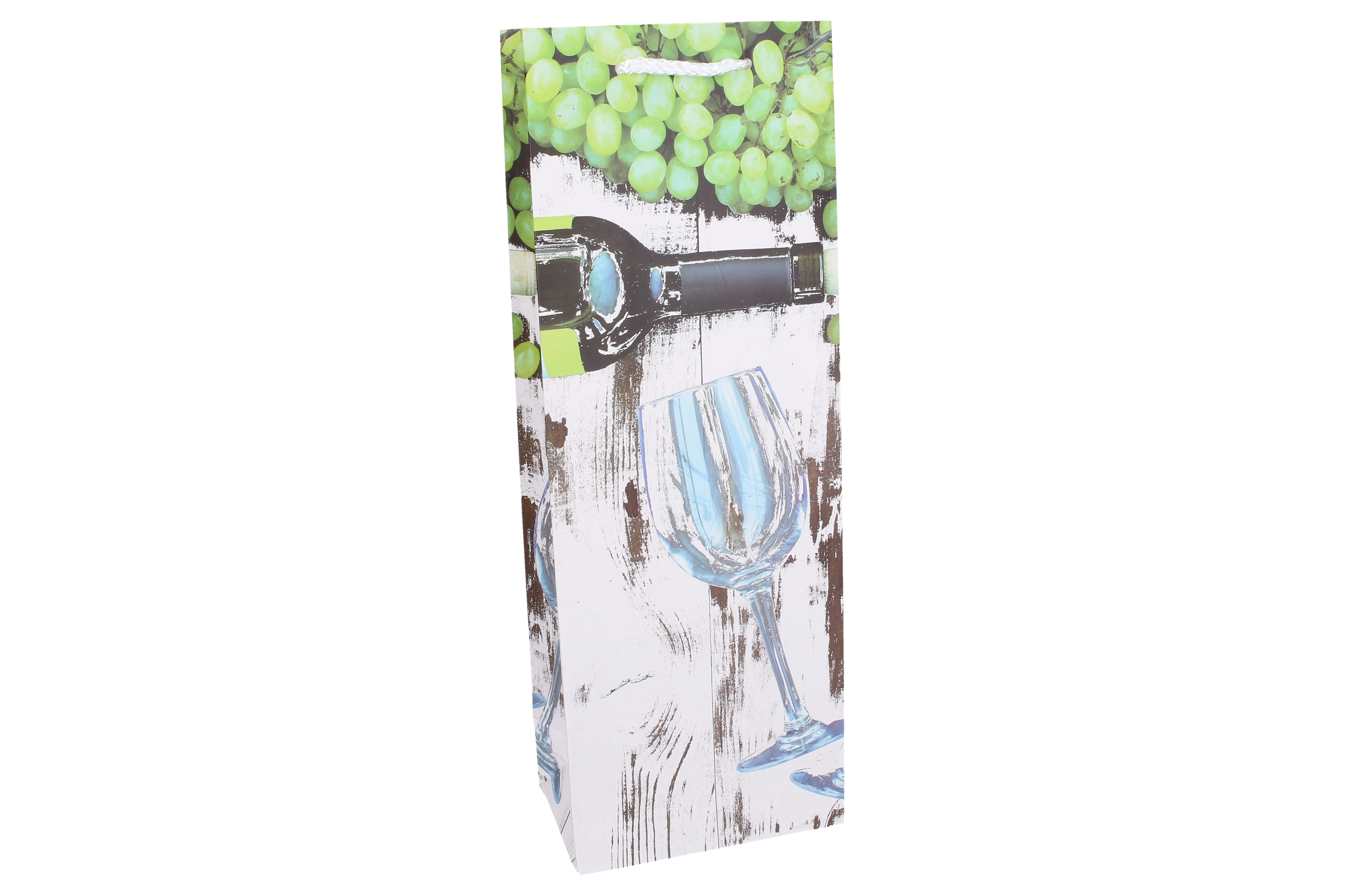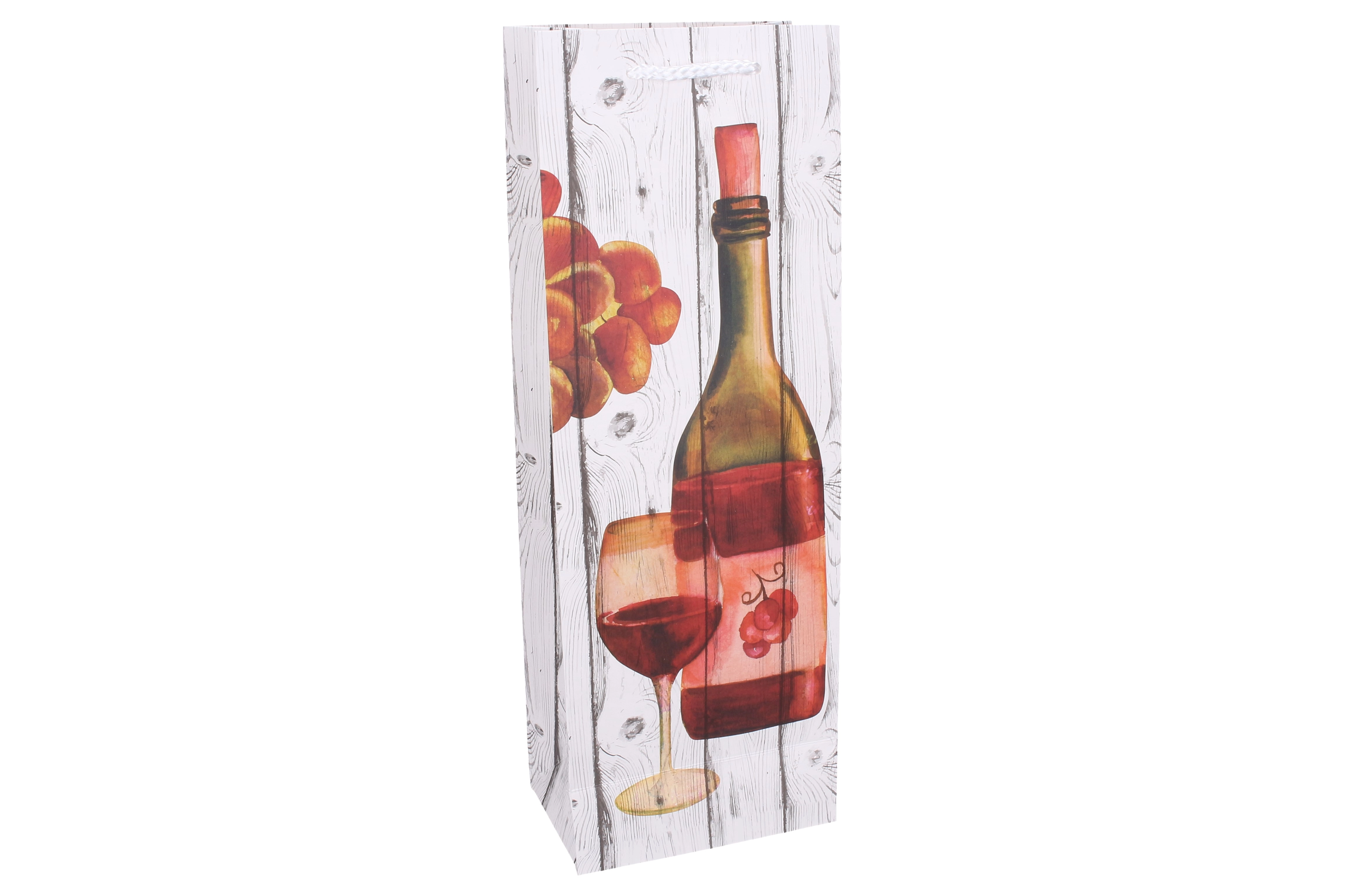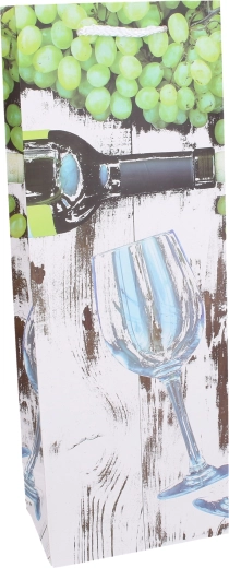 Această pungă cadou pentru sticlă, utilizabilă tot anul, cu dimensiunile 36 × 12,5 × 8,5 cm, este concepută pentru a găzdui în siguranță o sticlă standard de vin sau spumant și, în același timp, pentru a avea un aspect estetic. Hârtia de calitate, baza solidă și pliurile laterale asigură stabilitate, în timp ce decorul cu tematică de vin evidențiază caracterul festiv al cadoului.