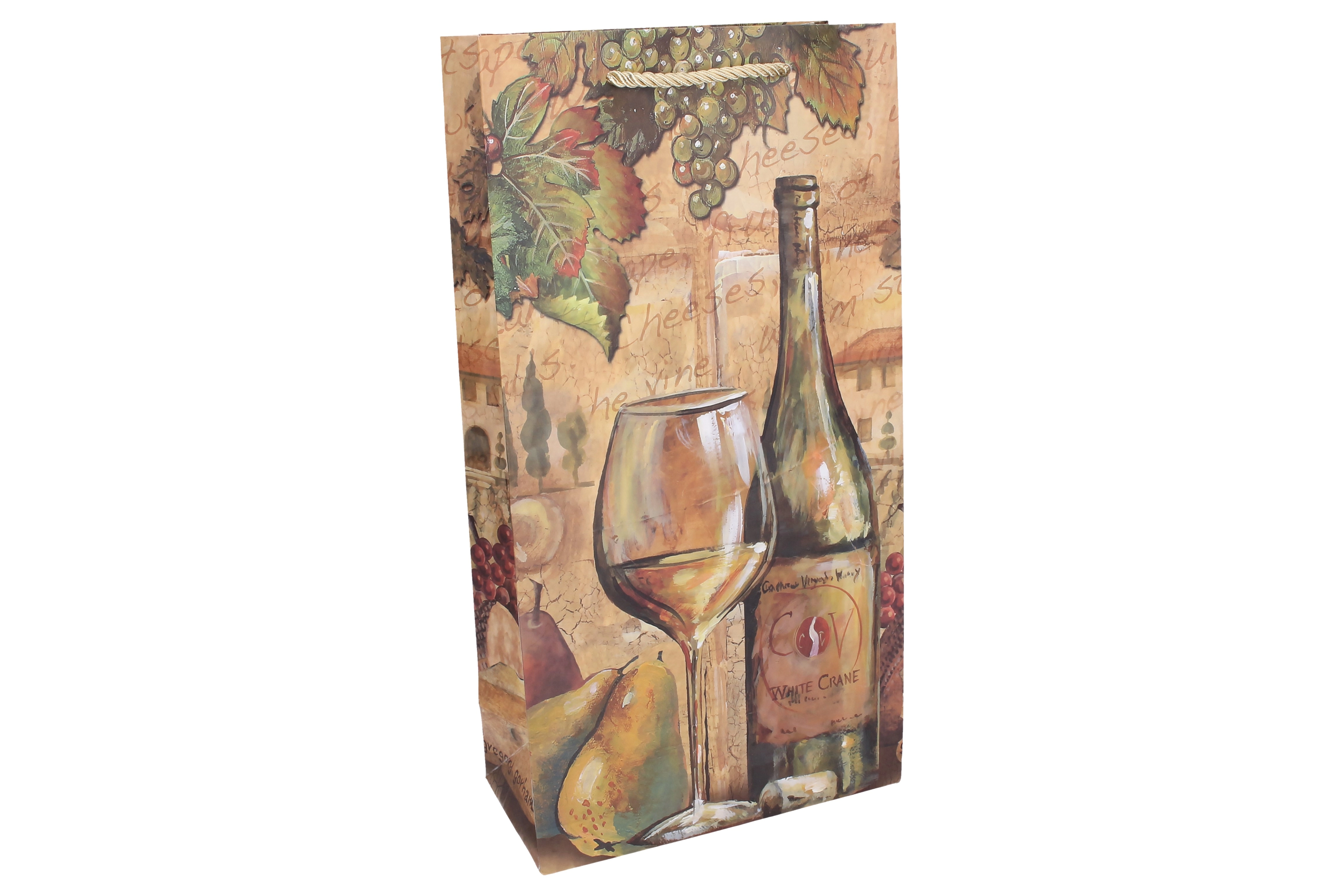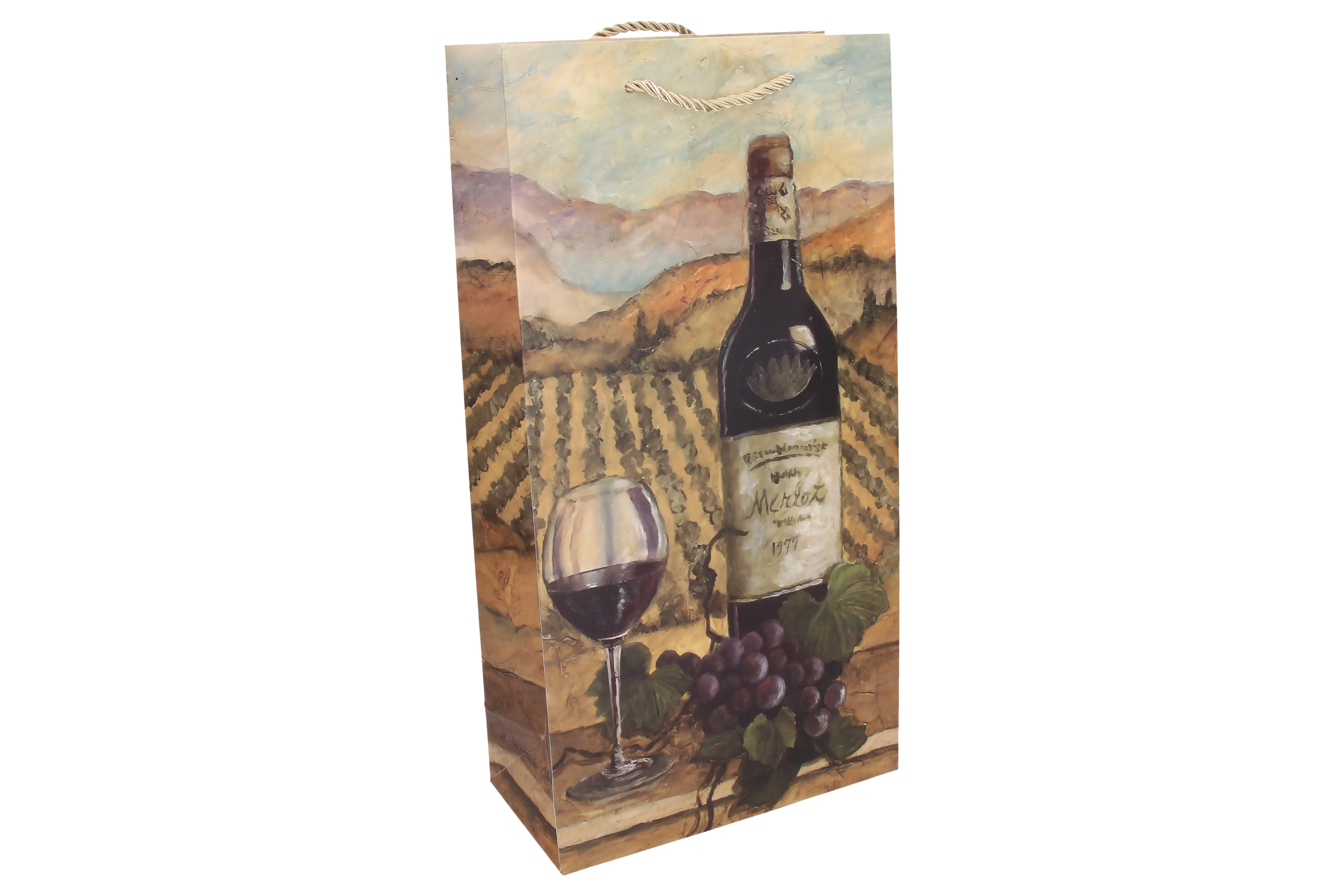 Pungă cadou elegantă pentru două sticle, ideală pentru vin, distilate sau delicatese. Oferă dimensiuni practice de 18 × 35 × 9 cm și un design universal pentru utilizare pe tot parcursul anului. Construcția rezistentă și mânerele solide asigură transportul în siguranță, iar aspectul stilat evidențiază caracterul deosebit al cadoului.
