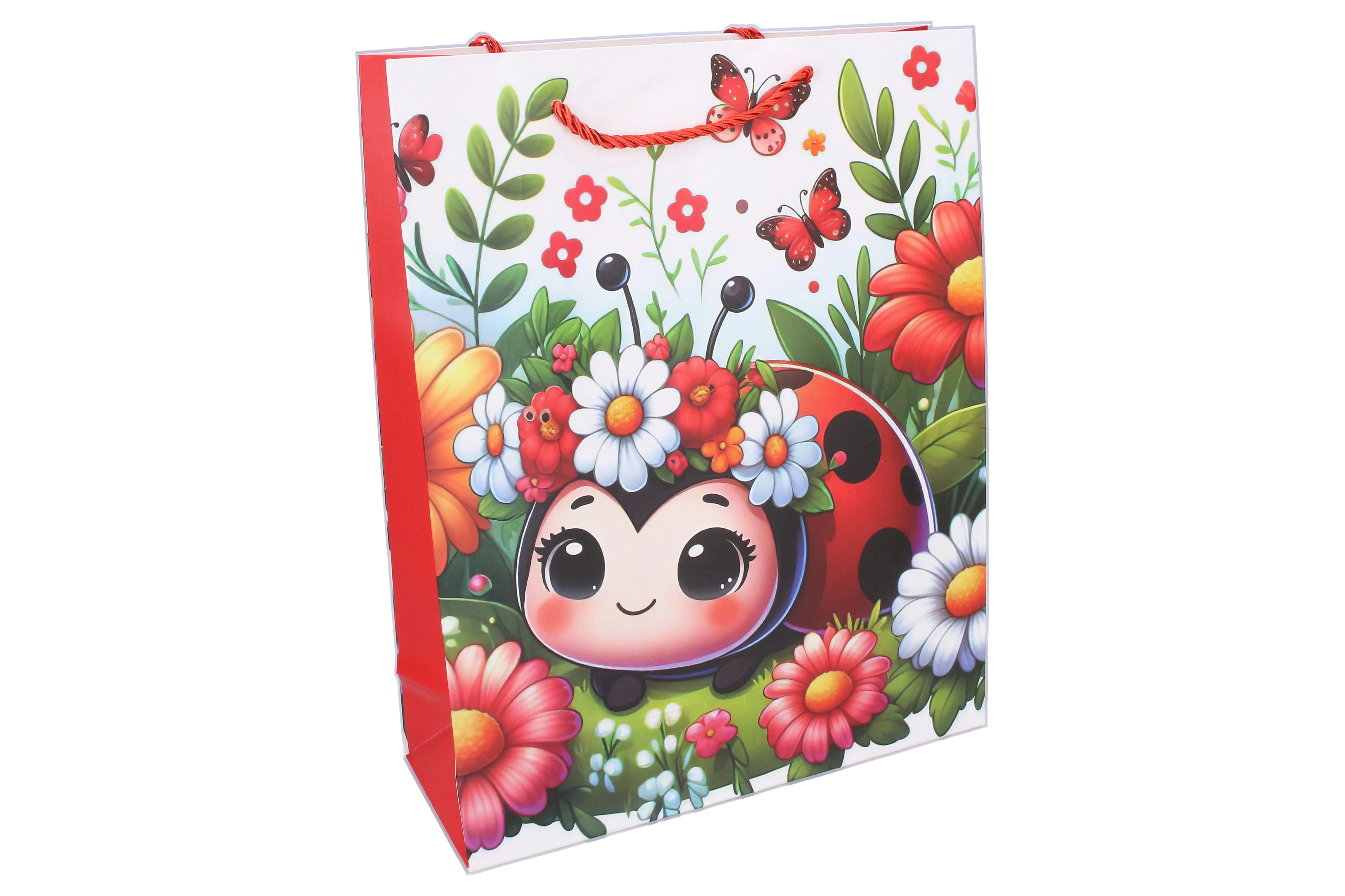 Pungă cadou drăguță, în dimensiunea compactă S (18 × 24 × 8,5 cm), cu motiv pentru copii cu buburuză, care va bucura atât pe cei mici, cât și pe cei mari. Ideală pentru cadouri mici, jucării sau mărunțișuri. Oferă 4 variante atractive, este rezistentă, practică și, datorită imprimării colorate, încântă încă de la înmânare.