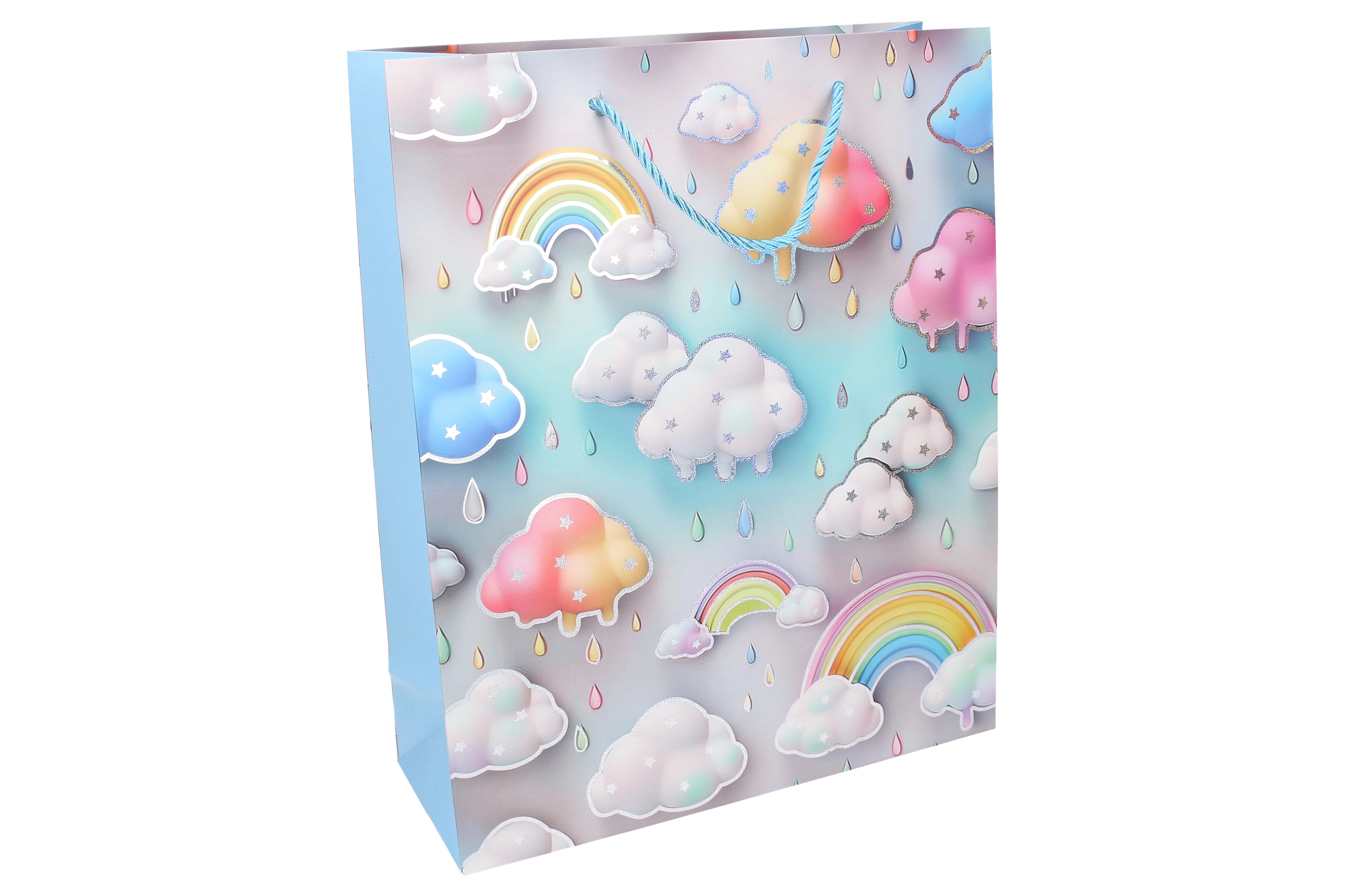 Elegantă și practică, punga cadou pentru copii în mărimea L ușurează ambalarea cadourilor de zi de naștere, sărbători sau surprize. Datorită formatului încăpător, poate găzdui jucării mai mari, cărți și seturi, asigurând transport confortabil și sigur.