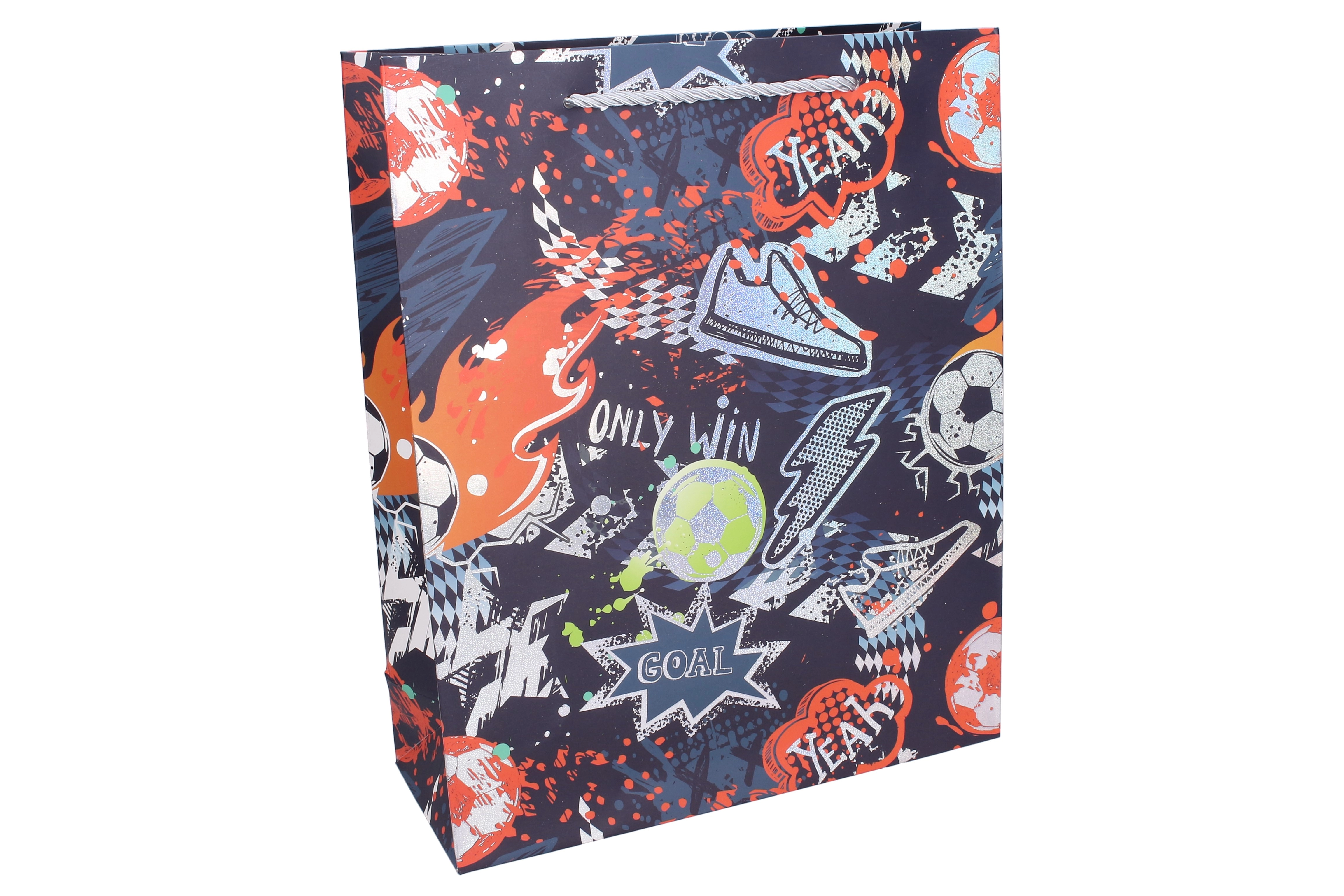 Designul cu tematică de fotbal, inscripții precum „GOAL”, „TEAM” sau „GAME” și culorile vii atrag din prima clipă. Sunt disponibile 4 variante de culoare, care oferă cadoului energie și stil.