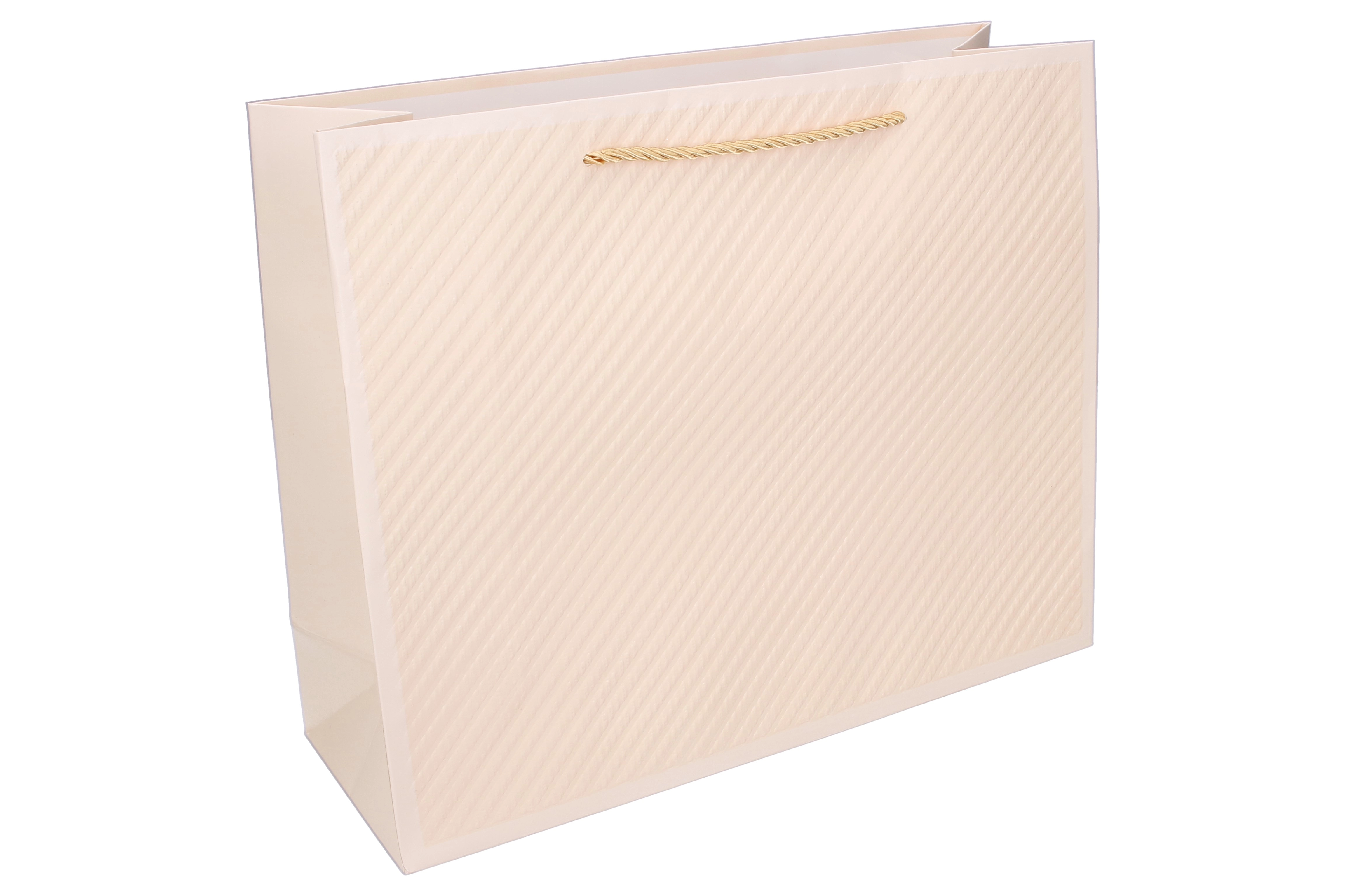 Pliajele laterale și fundul stabil facilitează ambalarea cadourilor mai voluminoase și asigură siguranță la transport.