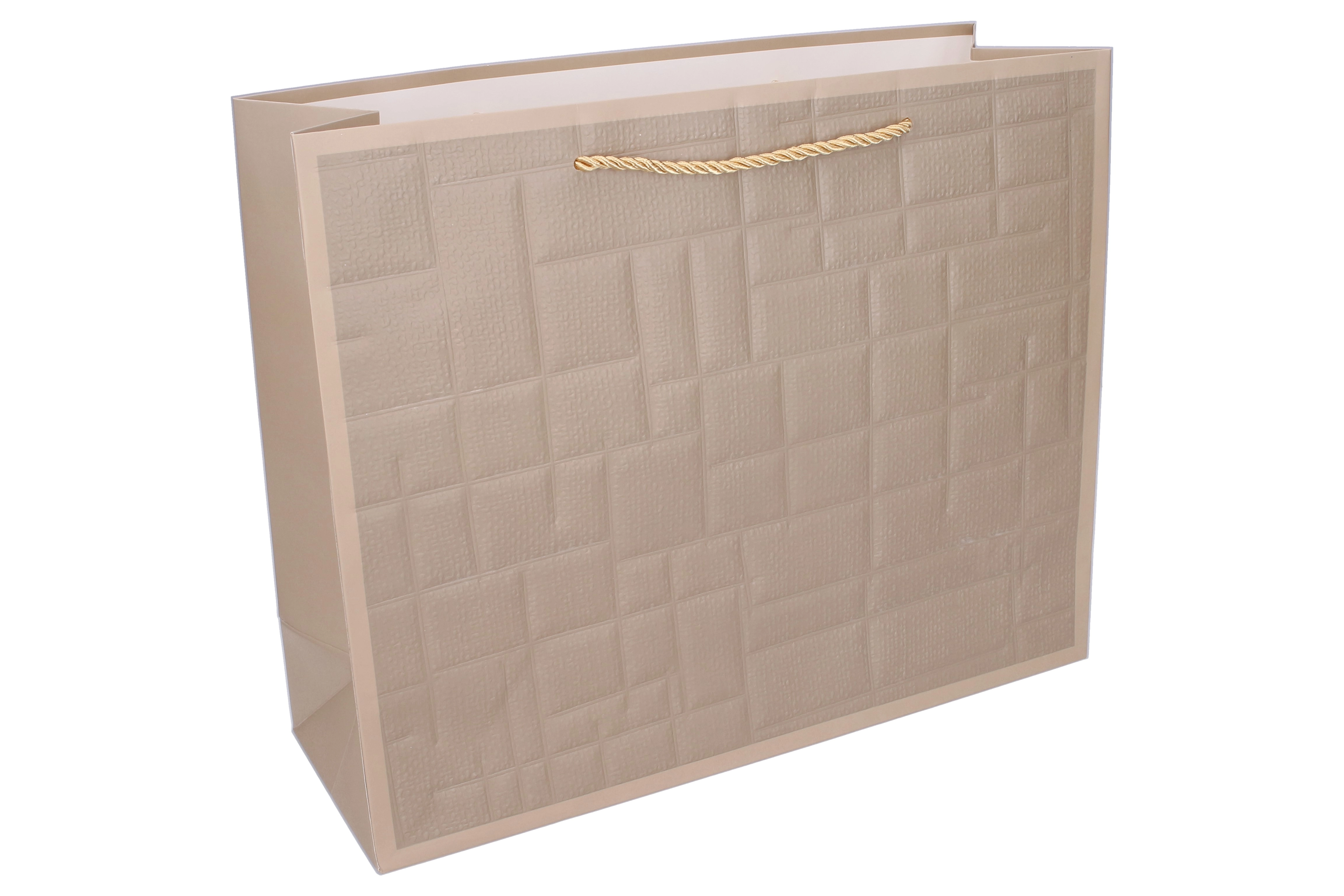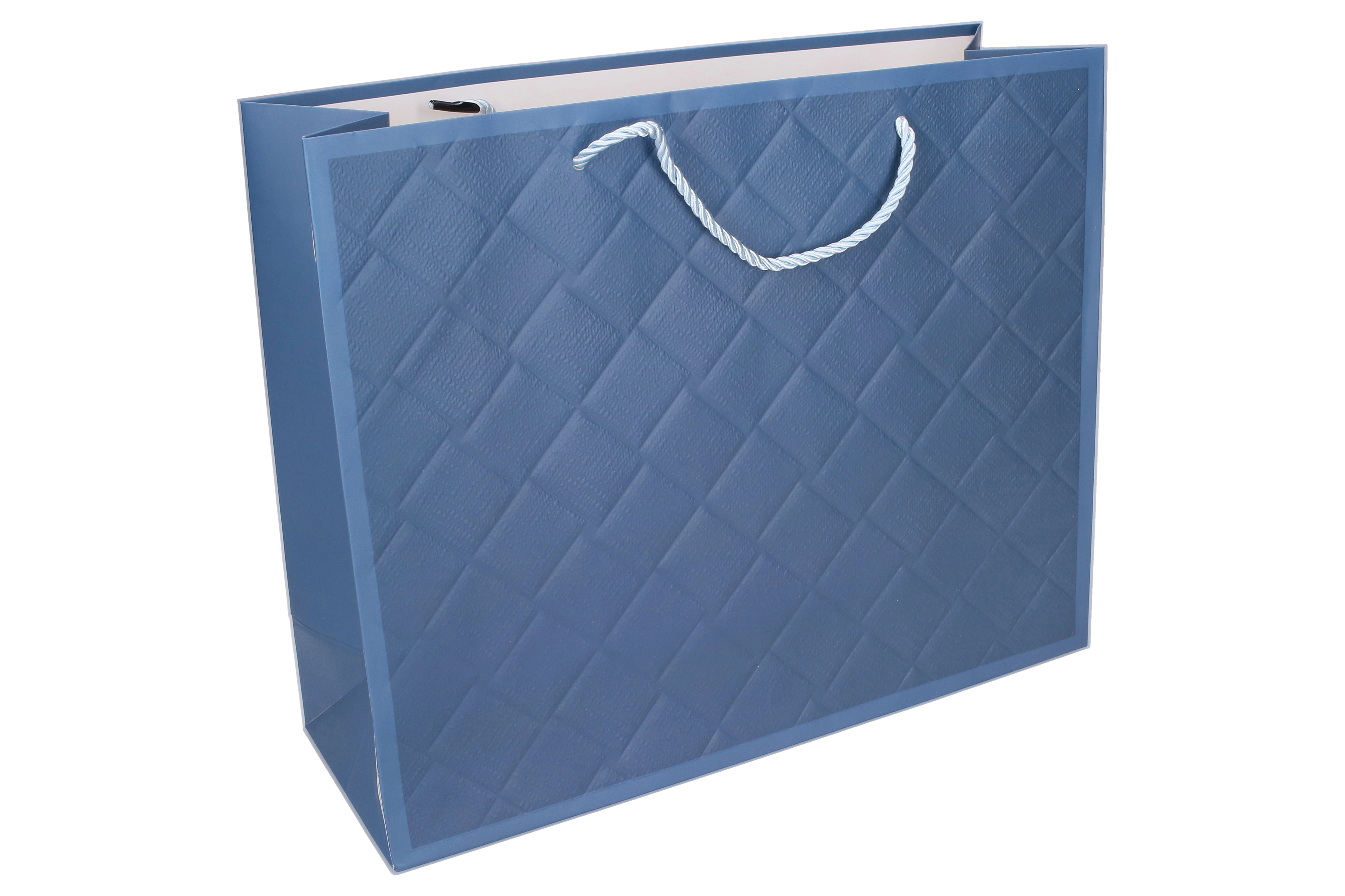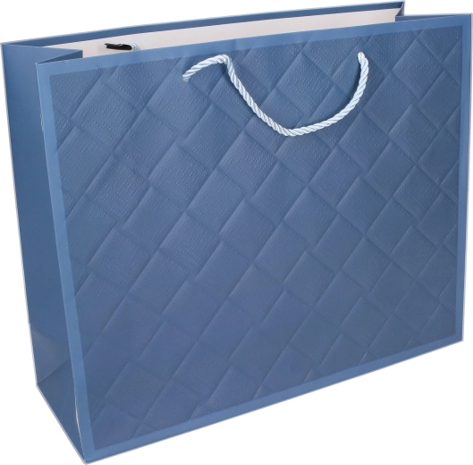 Suprafața texturată cu model discret oferă pungii un aspect luxos. Alege varianta albastră, maro, bej sau neagră pentru o asortare perfectă cu cadoul.