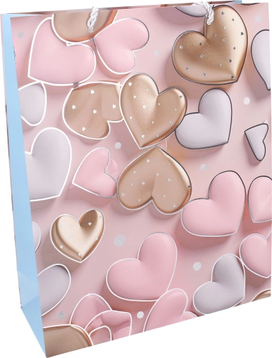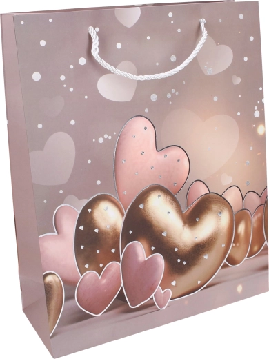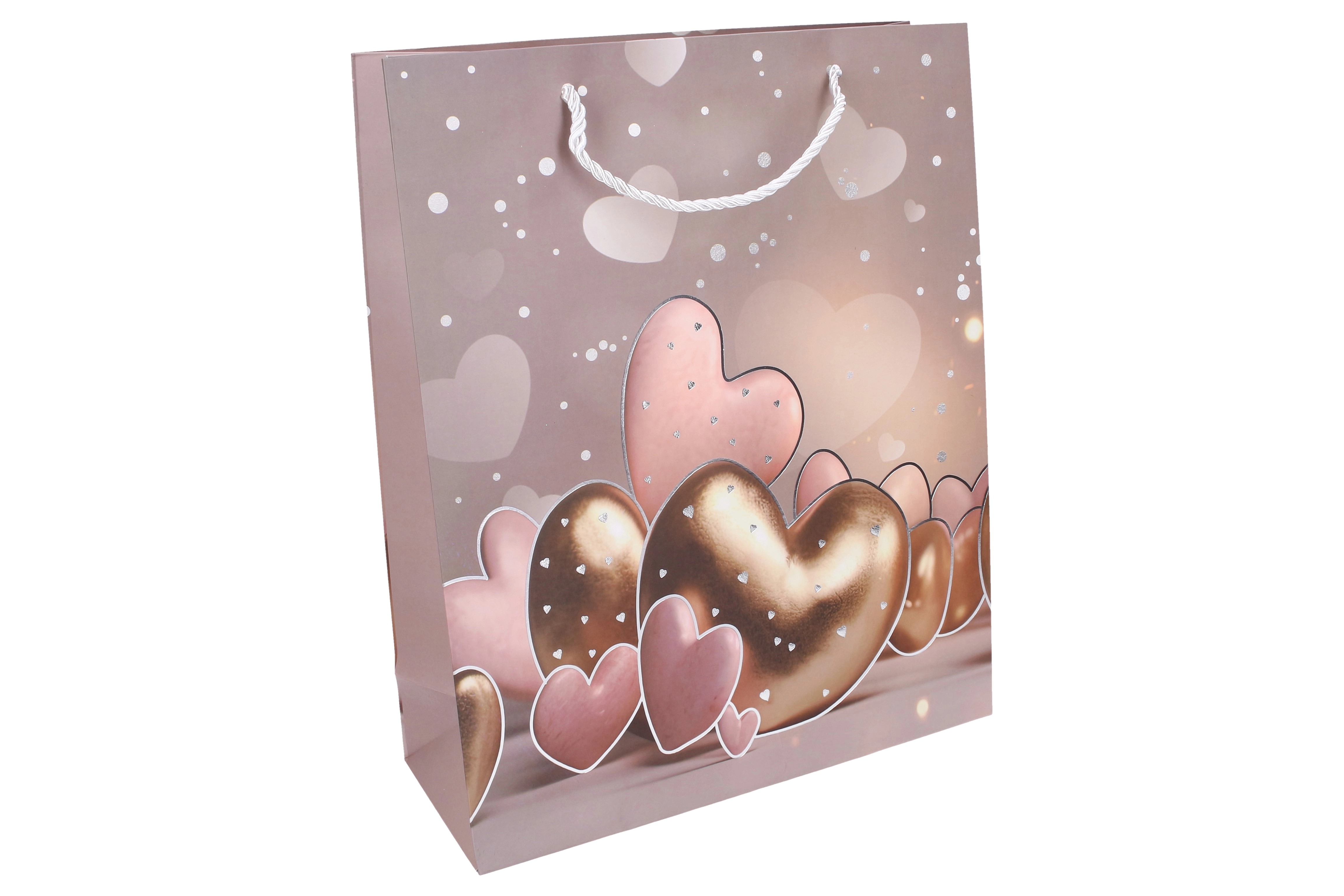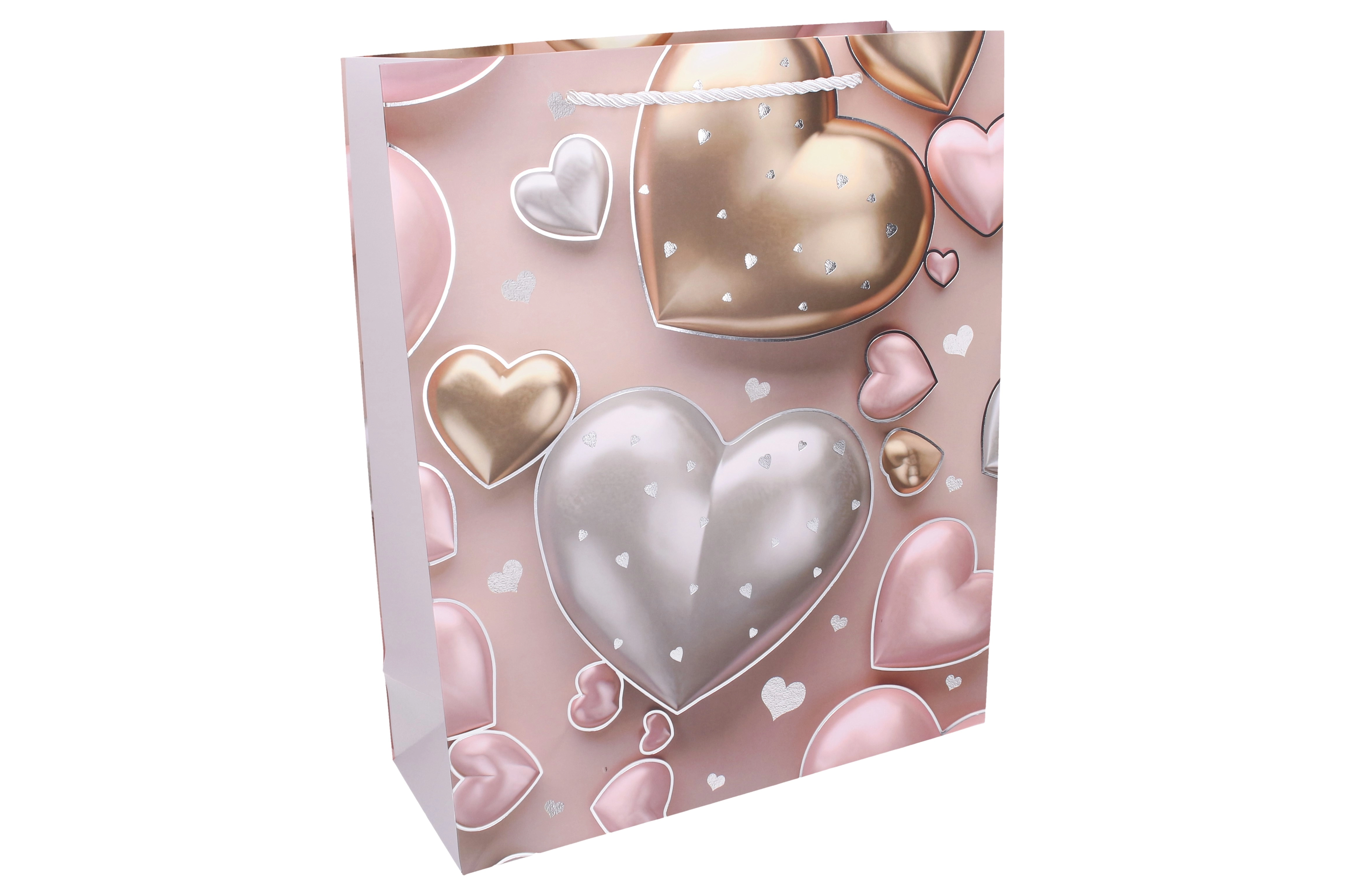 Pungă cadou stilată, mărimea L, cu dimensiunile 30 × 41,5 × 12 cm, ideală pentru ambalarea cadourilor pentru orice ocazie. Oferă un motiv pentru tot anul cu inimă, execuție robustă și patru variante de culoare pentru a se asorta cu cadoul.