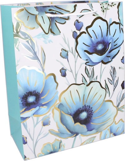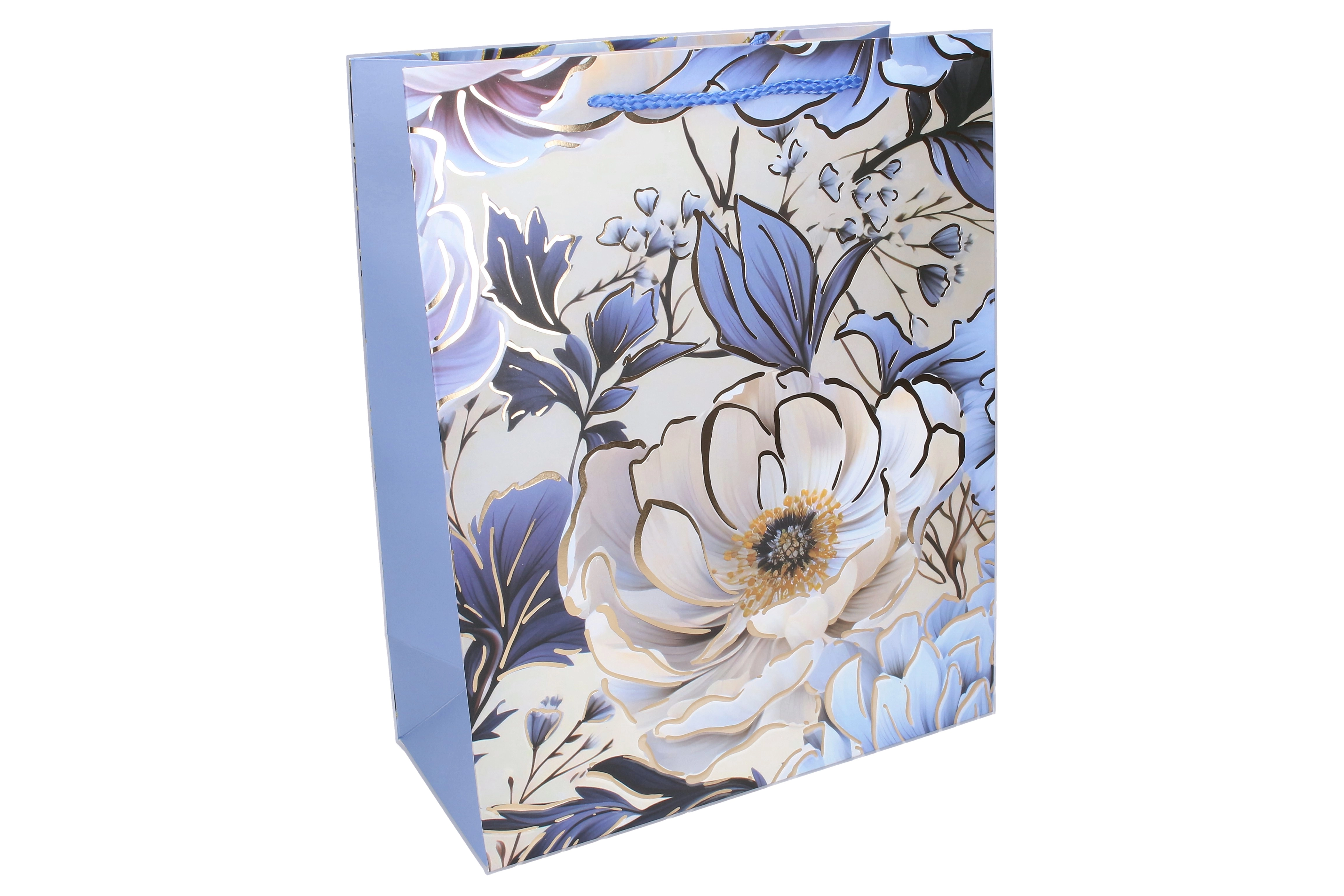 Designul este atemporal și universal – perfect ca ambalaj reciclabil și reutilizabil pentru orice ocazie. Alege dintre 4 variante elegante cu motive florale în nuanțe pastel și albastre, cu detalii aurii.