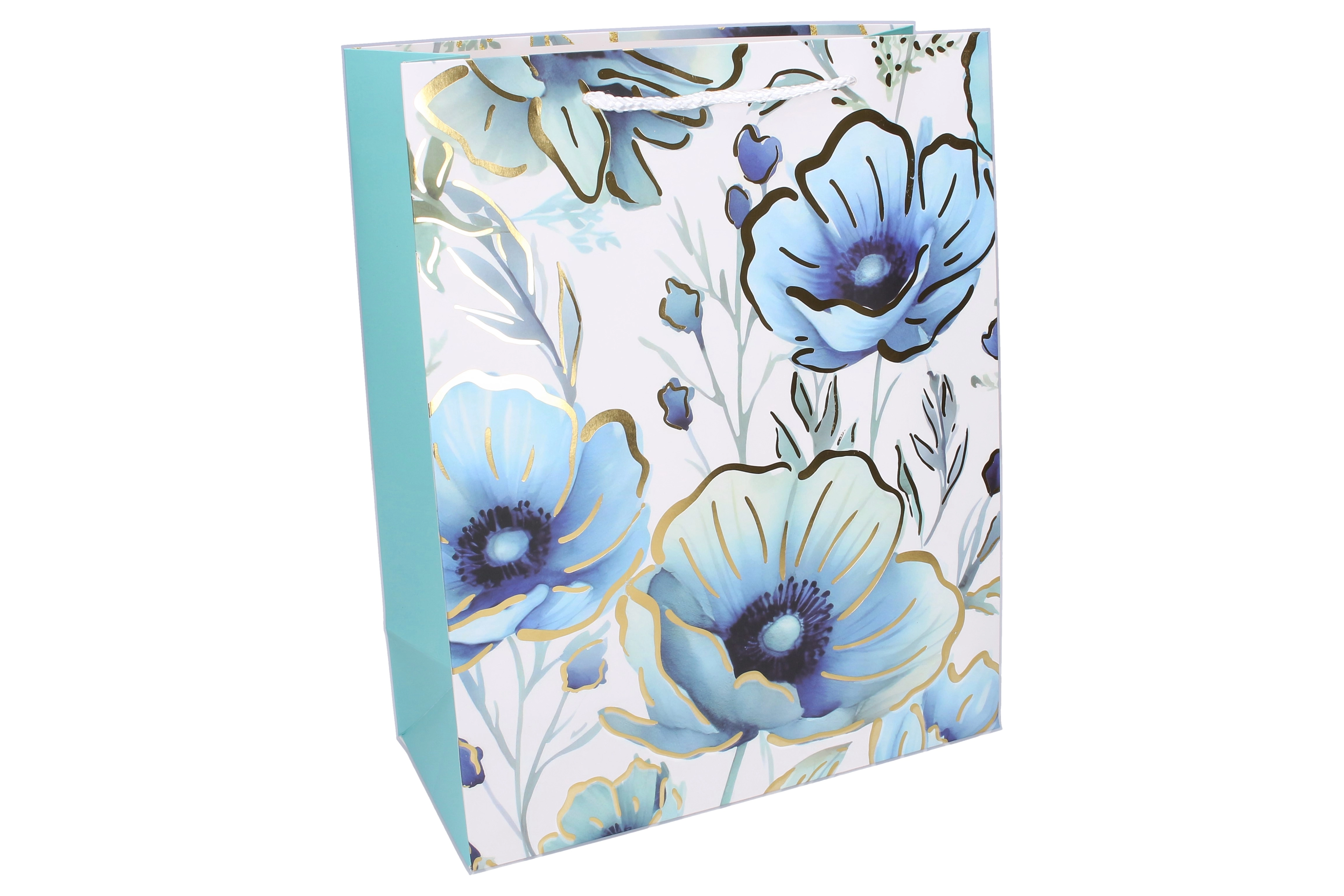 Pungă cadou elegantă, mărimea S, cu dimensiunile 18 × 23 × 10 cm, ideală pentru cadouri mici pe tot parcursul anului. Oferă construcție solidă, pliuri laterale (gusset) pentru spațiu suplimentar și motive florale stilate cu accente metalice. Datorită mânerelelor comode din șnur/ribbon și culorilor asortate, asigură o ambalare reprezentativă și sigură a cadoului tău.