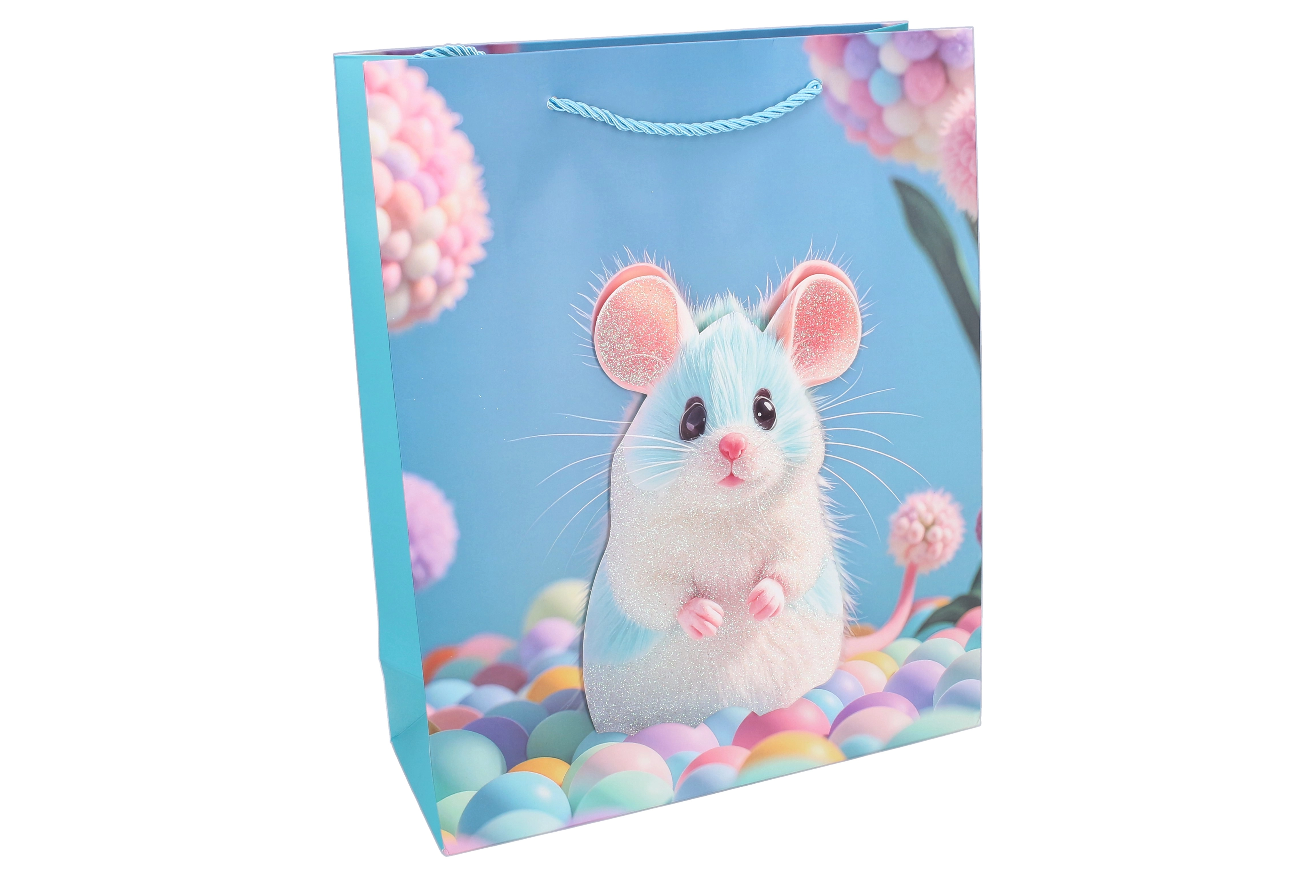 Pungă cadou pentru copii, mărimea L, cu dimensiunile 30 × 40 × 12 cm, ideală pentru zile de naștere, sărbători și alte petreceri. Oferă construcție robustă, spațiu generos pentru cadouri mai mari și 4 variante atractive de modele pentru băieți și fete.