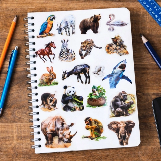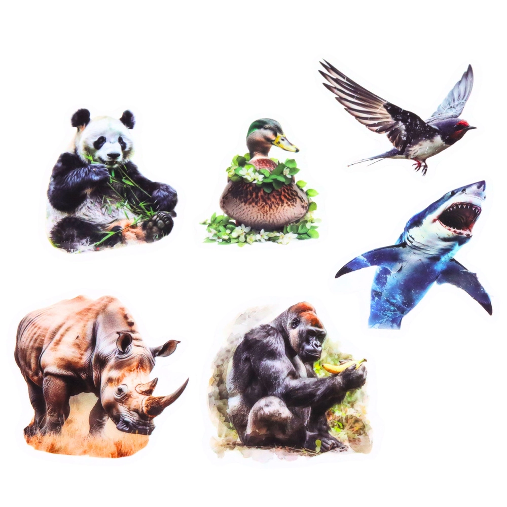 Aceste autocolante colorate, cu motive realiste de animale, transformă orice proiect într-o creație originală. Datorită fundalului transparent, animalul în sine iese în evidență, iar autocolantul arată curat și modern atât pe suprafețe deschise, cât și închise la culoare. Suprafața netedă ușurează aplicarea și oferă un aspect lucios, rezistent.