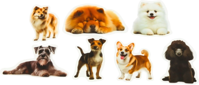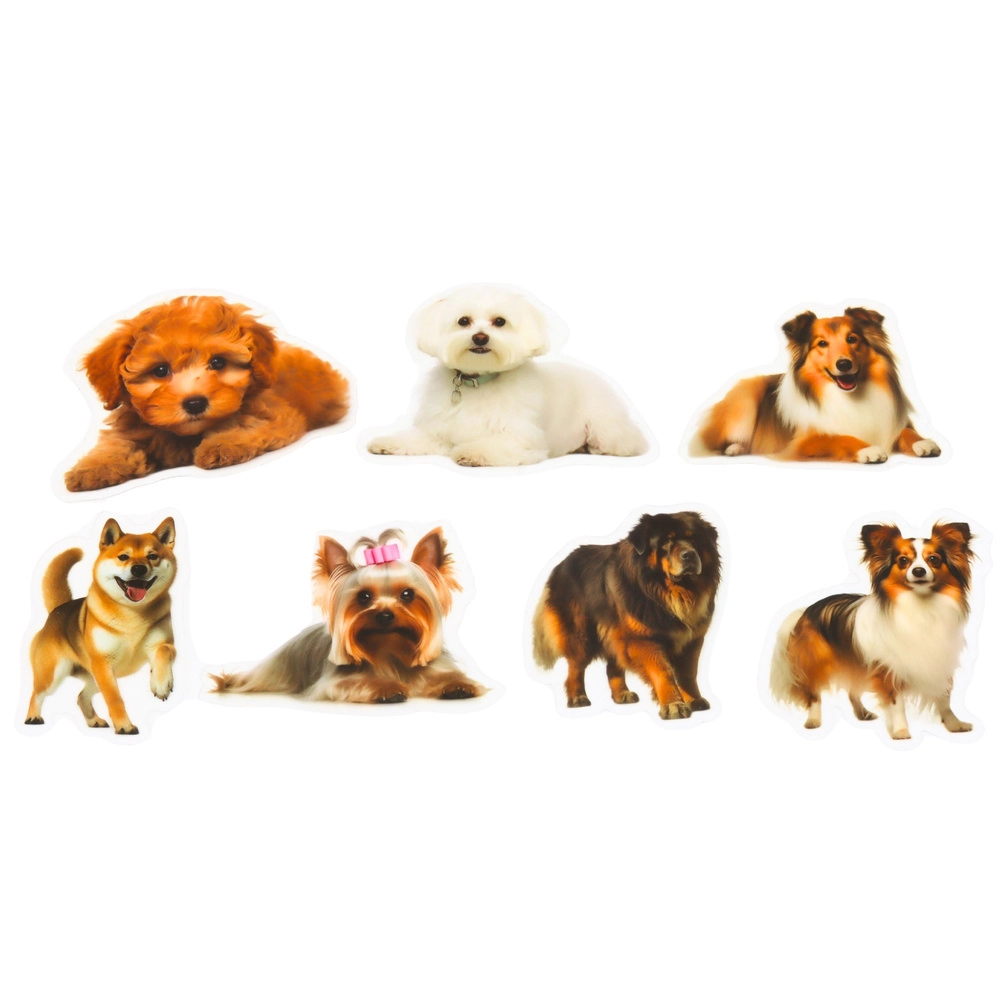 Imprimări realiste și colorate ale raselor de câini oferă decorațiunilor un aspect profesionist și atrăgător.
