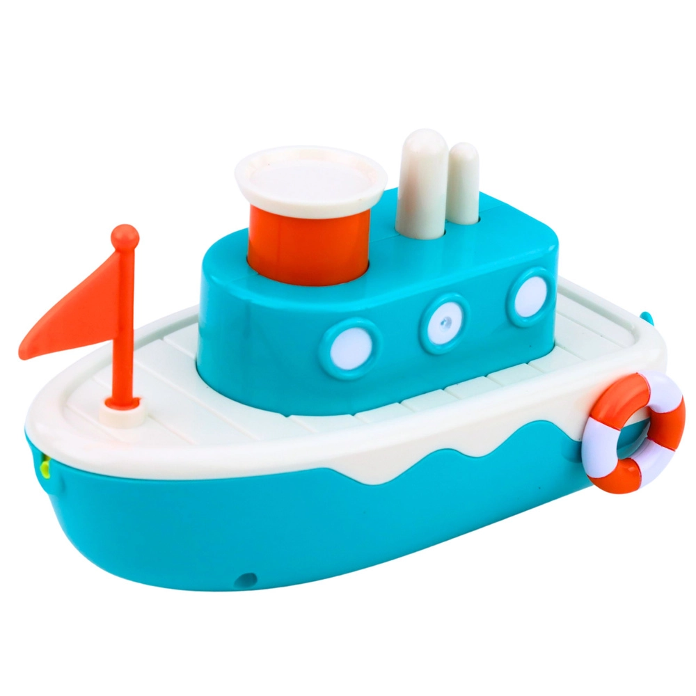 Transformă baia într-o aventură distractivă cu această bărcuță de baie cu mecanism de înfășurare, care plutește singură pe apă și, la apăsarea unui buton, stropește apă. Fabricată din plastic sigur în culori pastelate, susține motricitatea fină și coordonarea mână–ochi, fiind ideală pentru cadă, cabină de duș și ape puțin adânci.