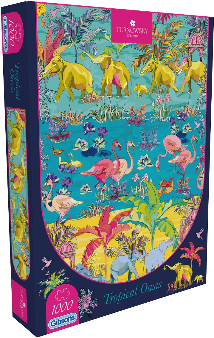 Descoperă farmecul relaxării cu acest puzzle de calitate GIBSONS – motivul oază tropicală te poartă într-o lume a palmierilor, culorilor și liniștii. Cu 1000 de piese și o execuție precisă, asamblarea este fluentă și plăcută, iar imaginea finală măsoară aproximativ 49 × 68 cm.