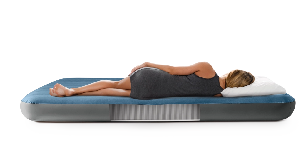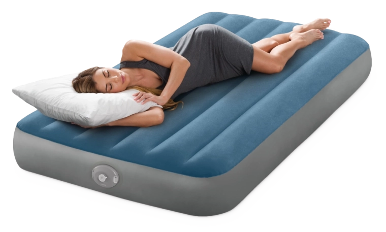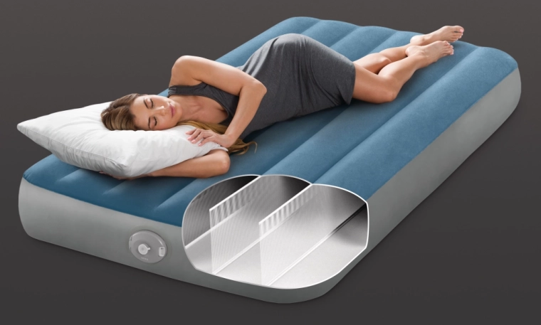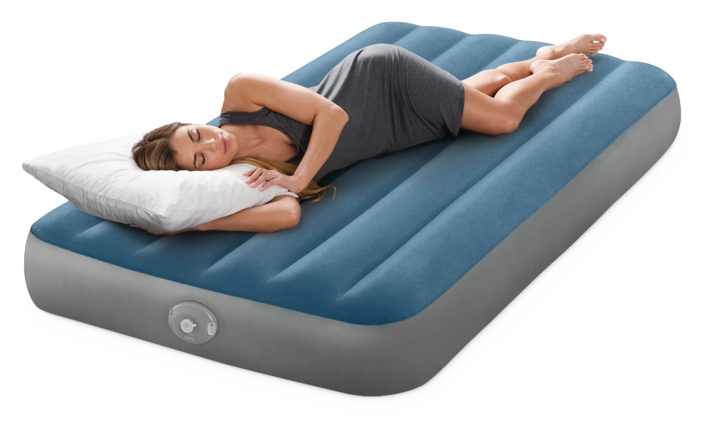 Salteaua gonflabilă Twin Prestige Downy este concepută pentru un somn stabil și confortabil. Construcția patentată Fiber‑Tech cu mii de fibre rezistente distribuie presiunea pe toată lungimea corpului, în timp ce suprafața catifelată în nuanțe de albastru‑gri este plăcută la atingere și împiedică alunecarea cearșafului.