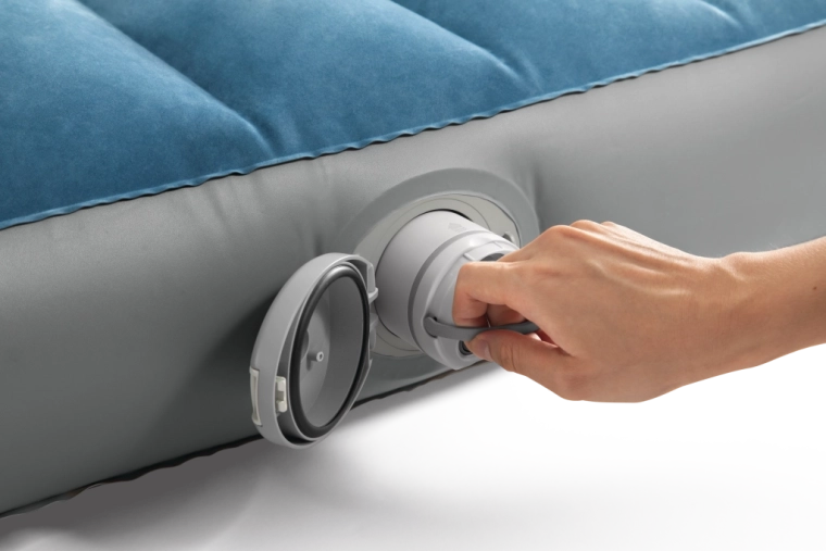 Valva practică cu capac protejează împotriva impurităților și servește totodată ca spațiu de depozitare pentru pompă și accesorii. Profilul jos de aproximativ 22 cm ușurează ridicarea și întinderea. Ideală ca pat portabil pentru oaspeți, la camping sau pentru escapade de weekend.