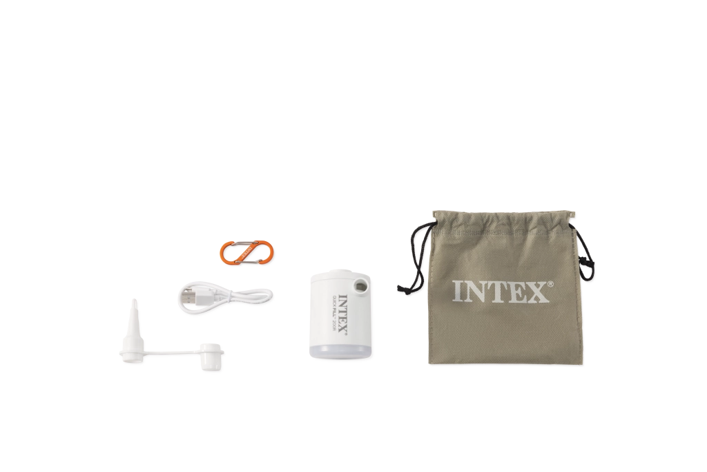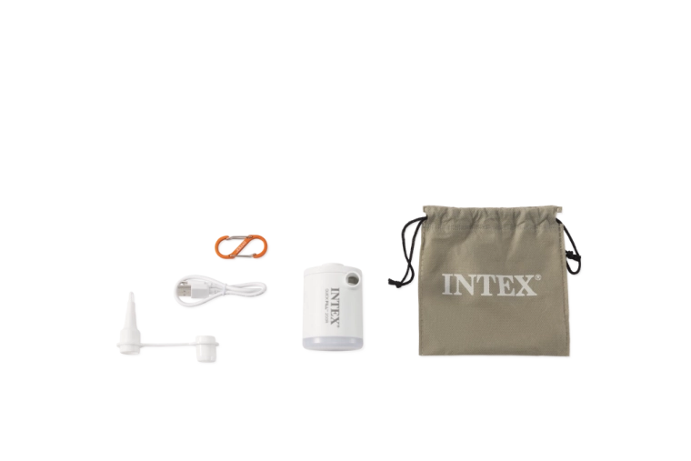 Pompă electrică INtex Quick-Fill USB 200R compactă și ușoară pentru umflarea rapidă a saltelelor, șezlongurilor și jucăriilor. Oferă un debit de până la 200 l/min, încărcare prin USB‑C, baterie integrată de 3,7 V și lumină LED practică de până la 6 ore. Datorită carabinierei o poți prinde ușor de rucsac sau cort – ideală pentru camping și călătorii.