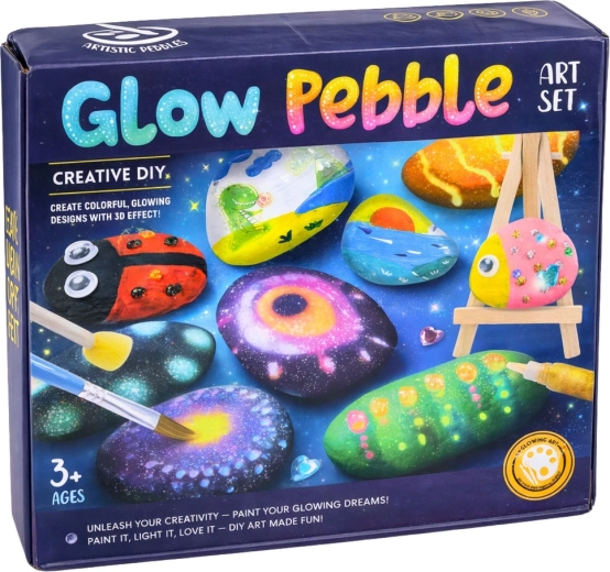 Acest set creativ pentru pictarea pietrelor este ideal pentru copiii care iubesc să creeze. Pietrele netede naturale pot fi decorate cu vopsele acrilice, autocolante și pigmenți fosforescenți, care, după expunerea la lumină, strălucesc în întuneric și oferă creațiilor un efect unic.