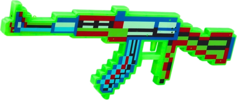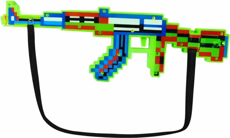 Această jucărie pușcă pixelată, stilată, aduce în joaca copiilor atmosfera jocurilor video retro. Datorită efectelor luminoase intense și sunetelor realiste ale focurilor, fiecare poveste devine mai dinamică și mai distractivă. Construcția ușoară și cureaua de umăr detașabilă asigură transport comod și joacă prelungită.