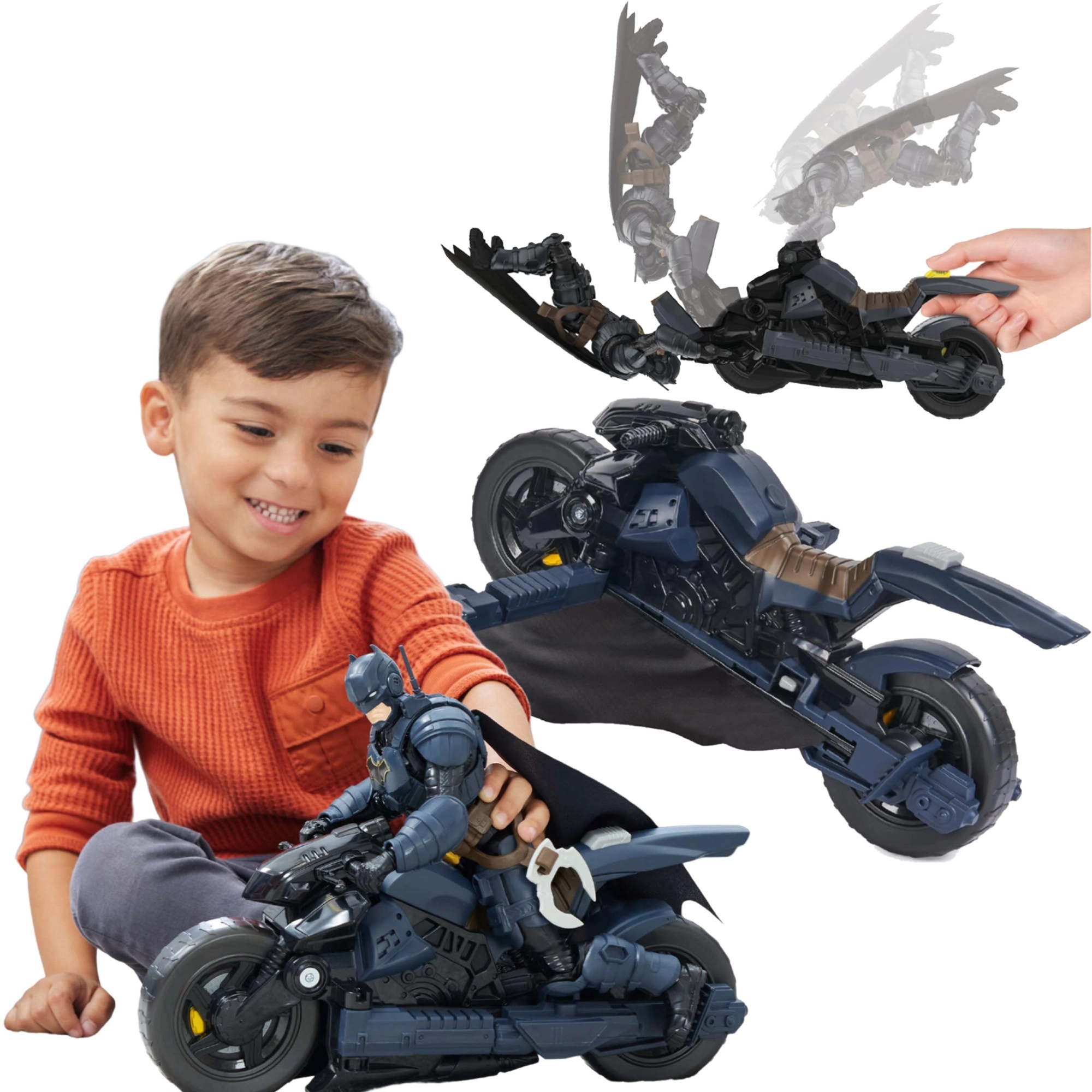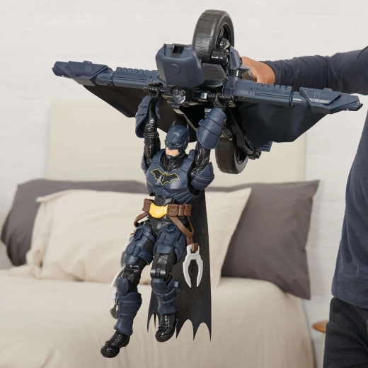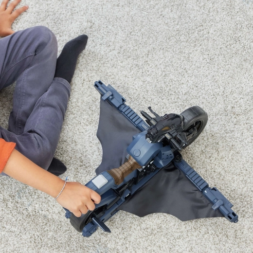 Batcycle aduce copiilor acțiune autentică de supererou. Motocicleta oferă un loc stabil pentru figură și o prindere fermă de ghidon, astfel încât mersul și „zborul” sunt line și sigure. La apăsarea butonului din spatele șeii, vehiculul se transformă într-un planor cu aripi, extinzând posibilitățile de joc de la urmăriri la aterizări îndrăznețe.