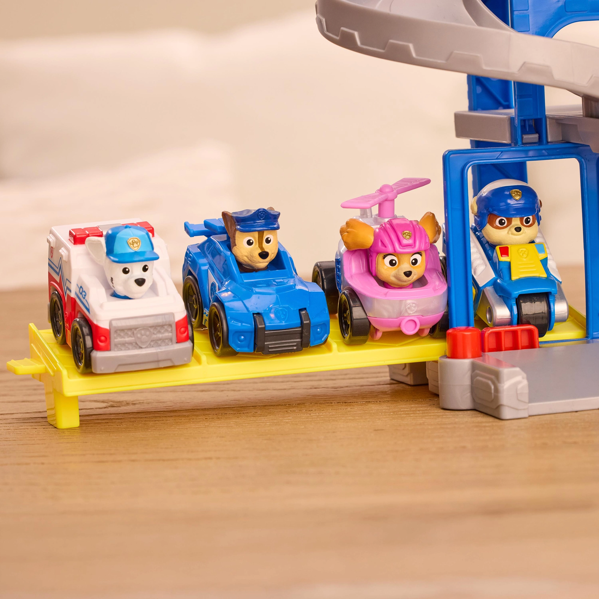 Datorită compatibilității cu alte vehicule Pup Squad (se vând separat), copiii își pot extinde universul de joacă și pot crea mereu noi scenarii, curse și operațiuni de salvare. Spațiul de depozitare posterior facilitează strângerea figurinelor și accesoriilor după joacă.