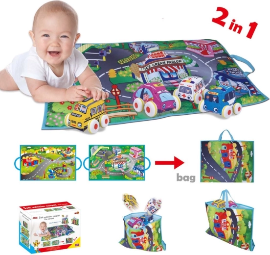 Pătură de joacă 2în1 distractivă și portabilă, cu mașinuțe moi, care le oferă copiilor ore de joacă creativă. Materiale moi și sigure, roți mobile pentru rulare lină și hartă rutieră pe pătură pentru a stimula imaginația, dezvoltarea motrică și jocul social. Datorită designului pliabil se transportă și se depozitează ușor – ideală acasă și în călătorii.