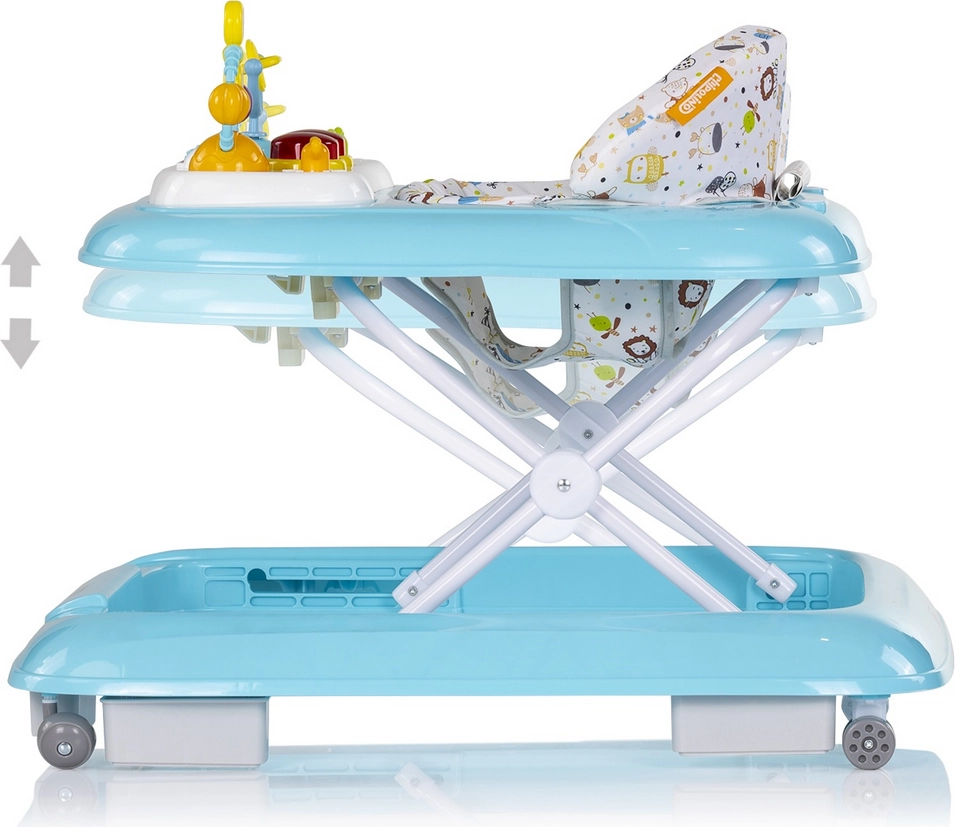Premergătorul interactiv Chipolino Baby Steps, în culoarea albastră, susține primele pași ai bebelușului și îi transformă într-o activitate sigură și distractivă. Oferă înălțime reglabilă în 3 poziții, scaun moale cu spătar înalt și panou interactiv cu melodii, lumini și butoane pentru dezvoltarea simțurilor și a motricității fine. Construcția stabilă, 6 opritoare antiderapante și 4 roți (2 rotative 360°) asigură siguranță la fiecare pas.