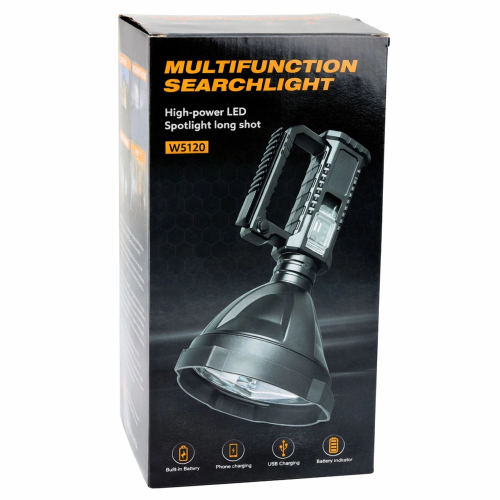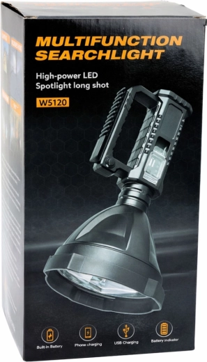 Reflectorul are acumulator încorporat cu încărcare prin USB și funcție practică de powerbank pentru încărcarea de urgență a telefonului. Rezistența la apă IPX5 protejează împotriva ploii și stropilor de apă. Mânerul ergonomic și construcția robustă asigură prindere confortabilă și durată de viață îndelungată.