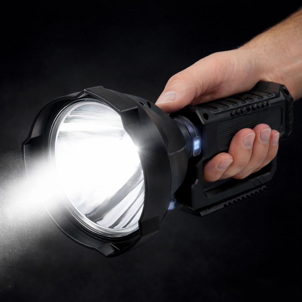 Parabola mare și reflectorul adânc creează un con îngust, cu rază lungă – ideal pentru căutare, lucru pe teren și activități nocturne.