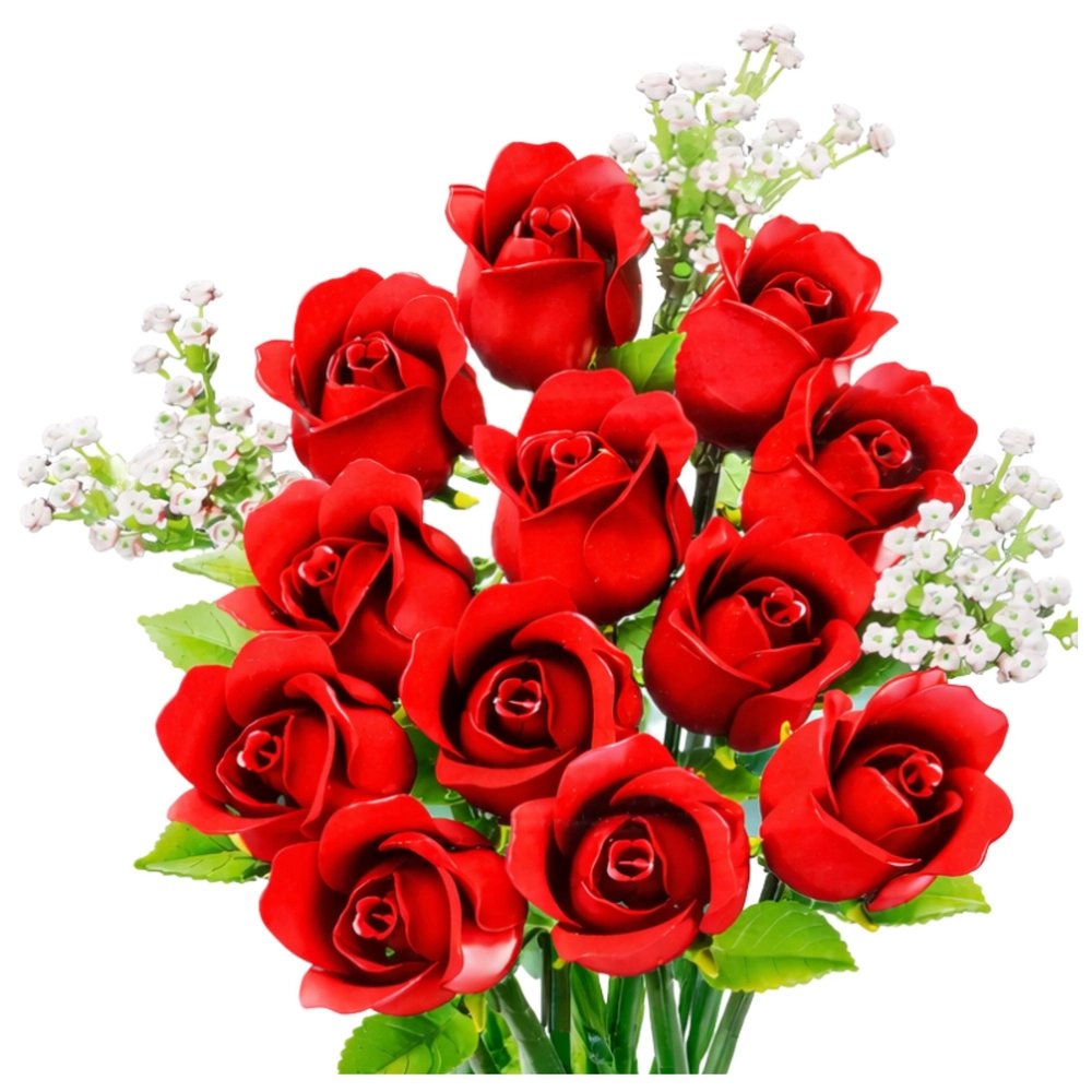 Setul conține tot ce este necesar pentru asamblarea buchetului complet: 12 trandafiri roșii și 3 gypsophile. Datorită celor 952 piese te vei bucura de o construcție îndelungată și satisfăcătoare, potrivită atât pentru începători, cât și pentru constructori avansați. Modelul final se evidențiază într-o vază pe masă, pe o poliță sau la birou și este o idee excelentă de cadou pentru zi de naștere, onomastică sau aniversare.