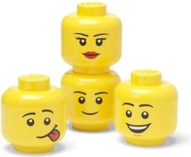 Set practic cu patru mini capete de depozitare în forma iconicului cap al figurinei LEGO, pentru organizarea clară a mărunțișurilor. Datorită dimensiunilor compacte sunt ideale pentru piese LEGO, jucării mici sau dulciuri și se potrivesc de minune și la birou. Design stivuibil, compatibilitate cu boxurile de birou LEGO cu sertar și material sigur fără BPA, ftalați și PVC asigură o utilizare comodă și sigură.