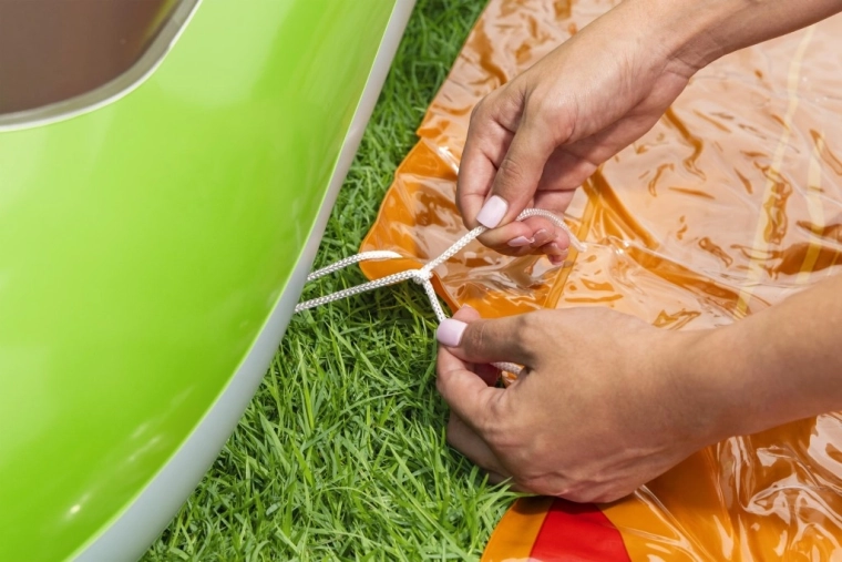 Stropitorul integrat în arcul vulcanic se conectează ușor la furtunul de grădină și creează efecte acvatice plăcute, care răcoresc și distrează.
