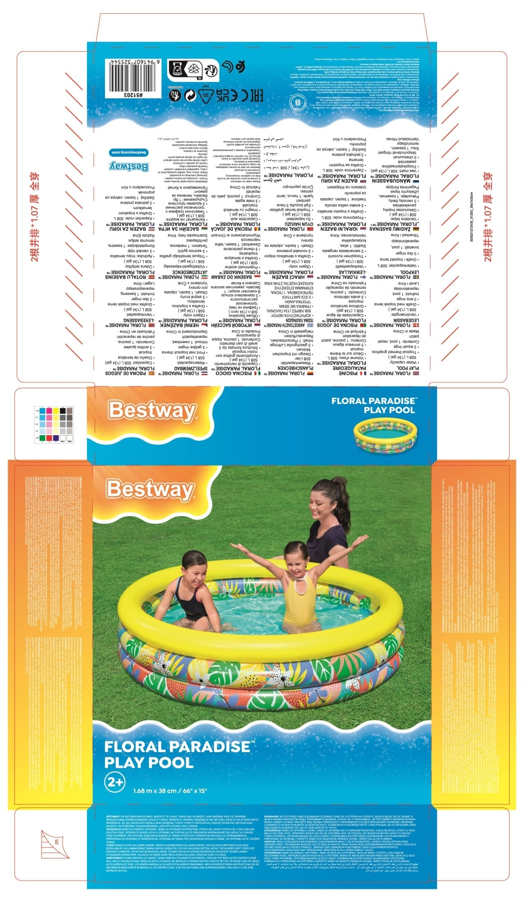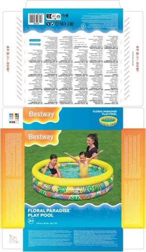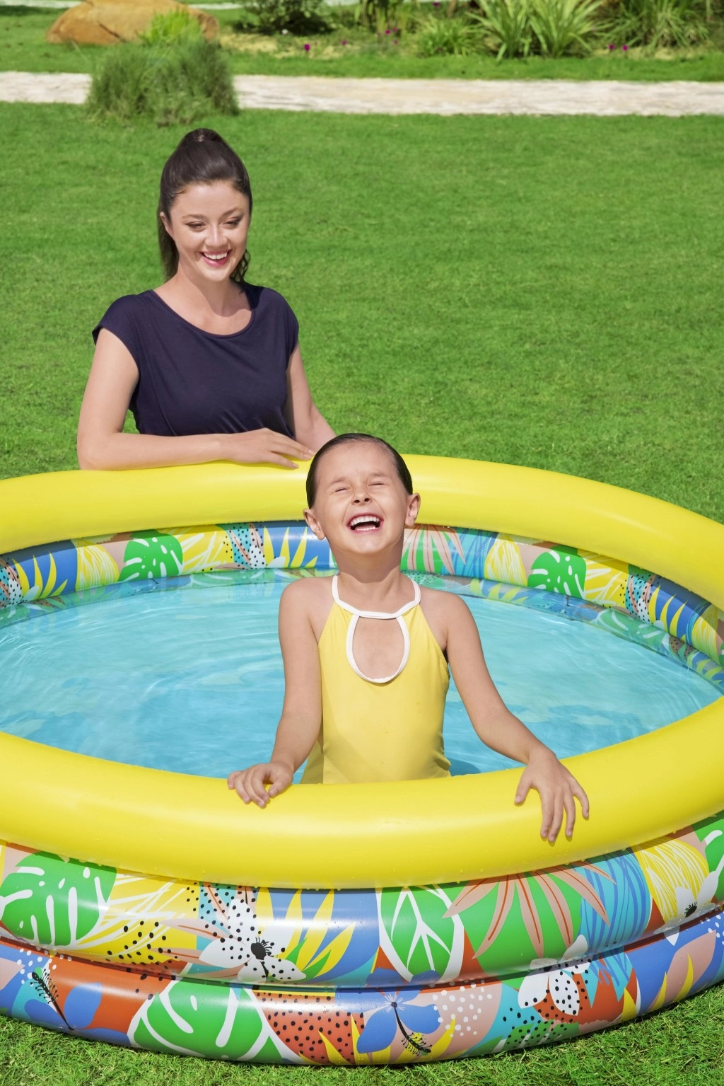 Înveselește vara cu piscina gonflabilă Floral Paradise pentru copii de la 2 ani. Construcția cu trei camere, cu inele gonflabile stabile, valve de siguranță și material PVC rezistent, asigură distracție acvatică în siguranță. Datorită instalării rapide, dimensiunilor compacte după dezumflare și designului tropical vesel, este ideală pentru orice grădină.