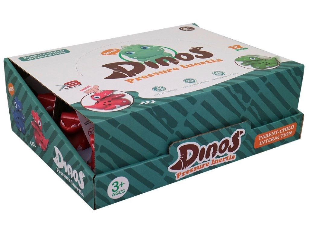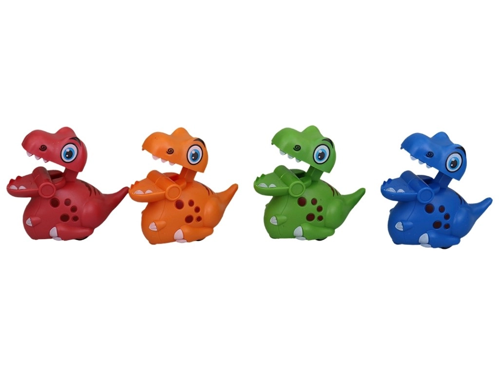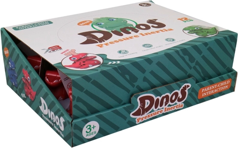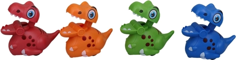 Dinozaurul este disponibil în variante de culoare – roșu, albastru, portocaliu și verde. Datorită dimensiunilor compacte, încape cu ușurință în rucsac sau în buzunar, astfel încât poate aduce bucurie în călătorii, în parc sau la bunici.