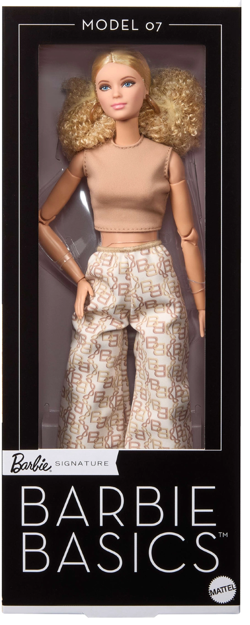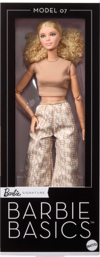 Păpușa BARBIE Signature Basics Model 07 celebrează minimalismul și eleganța modernă. Chipul delicat, cu ochi albaștri, machiaj subtil și ten deschis, subliniază frumusețea ei clasică. Părul blond și creț este coafat simplu, în armonie cu estetica curată a întregii serii.