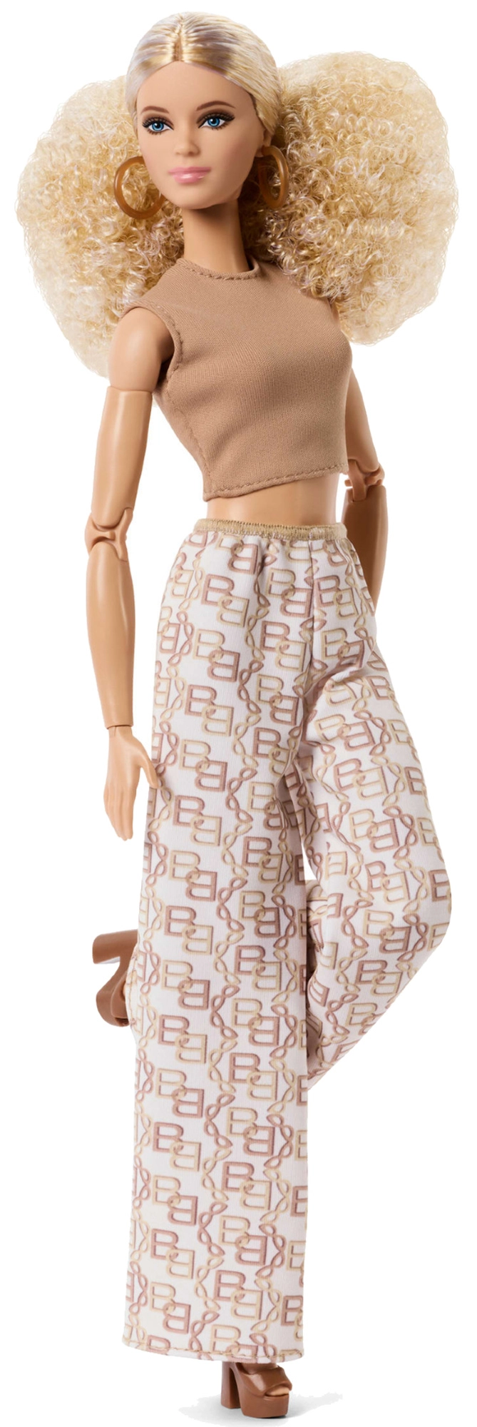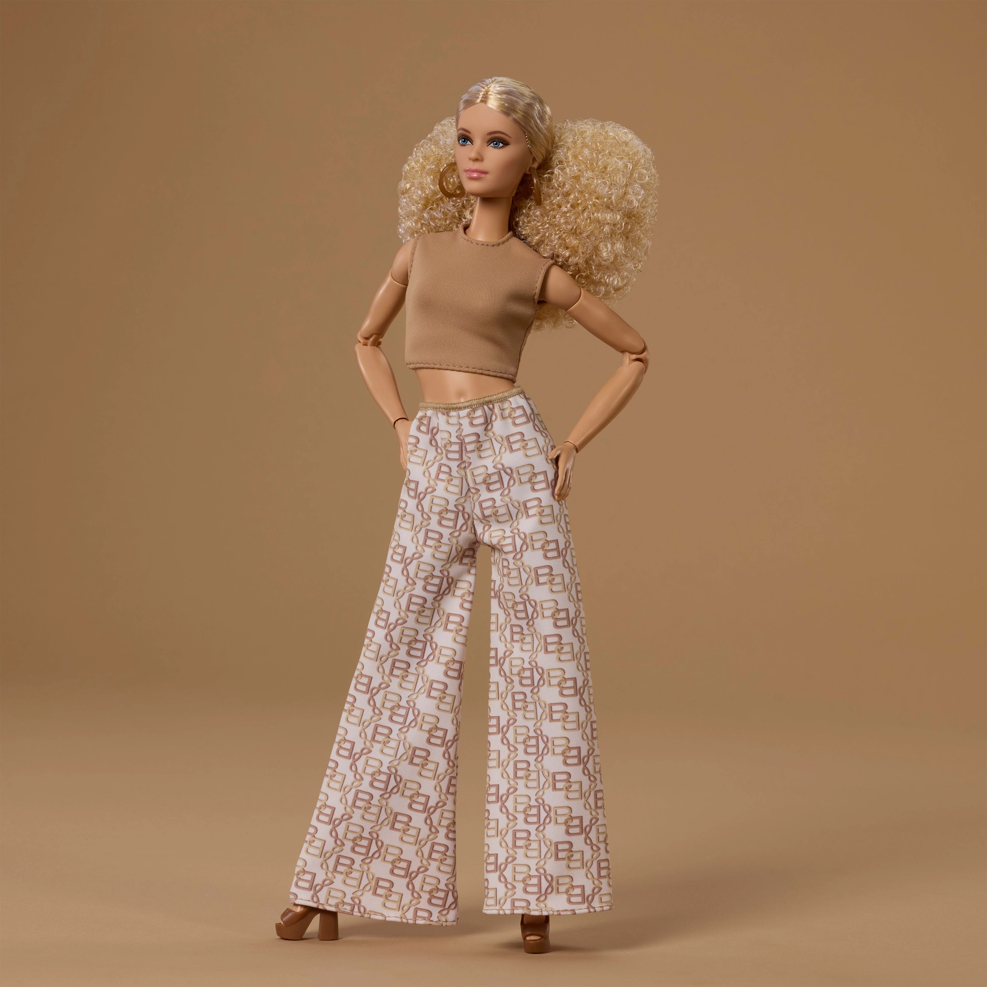 Stilul este definit de nuanțe neutre și atemporale – maro deschis, alb și auriu. Păpușa poartă un top elegant și pantaloni lungi, largi, ce se combină perfect cu alte accesorii BARBIE. Datorită înălțimii standard de aprox. 29 cm, este compatibilă cu majoritatea accesoriilor și mobilierului BARBIE.