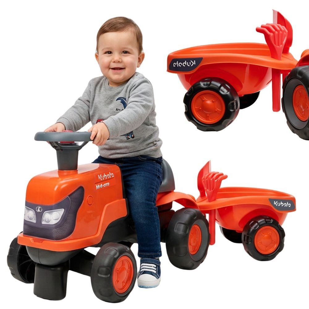 Tractorul ride-on FALK KUBOTA este ideal pentru primele încercări de deplasare independentă. Forma ergonomică asigură ședere confortabilă și manevrare ușoară, în timp ce construcția robustă, cu capacitate maximă de 25 kg, rezistă jocului zilnic. Datorită roților silențioase, este perfect atât pentru apartament, cât și pentru grădină, iar volanul cu claxon adaugă distracție și siguranță.