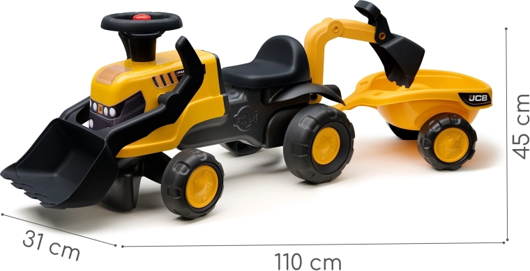 Setul include remorcă detașabilă și accesorii practice – lopățică și greblă – care încurajează joaca creativă pe nisip și în grădină. Manevrarea este ușoară datorită volanului rotativ cu claxon, care adaugă și mai multă distracție. Joaca cu tractorul dezvoltă motricitatea grosieră și fină, coordonarea mișcărilor și orientarea în spațiu.