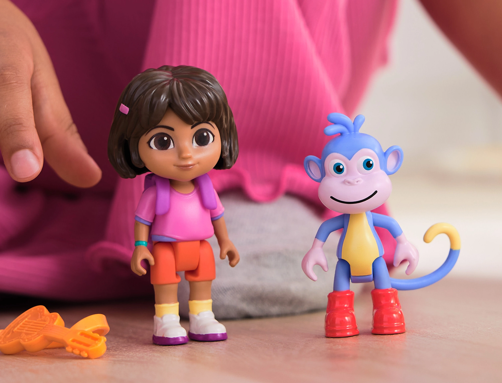 Sunt incluse figurine mobile ale Dorei și maimuței Boots și rucsacul iconic. Ideal pentru a reda scene din serial sau pentru propriile aventuri.