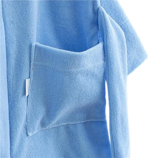 Oferiți copiilor confort și căldură după baie, la piscină sau la mare. Halatul de baie din frotir New Baby, în culoare albastră, este fabricat din 100% bumbac cu greutate de 240 g/m², care absoarbe excelent și este plăcut la atingere. Gluga protejează capul ud de frig, iar materialul fin este ideal pentru pielea sensibilă a copiilor.