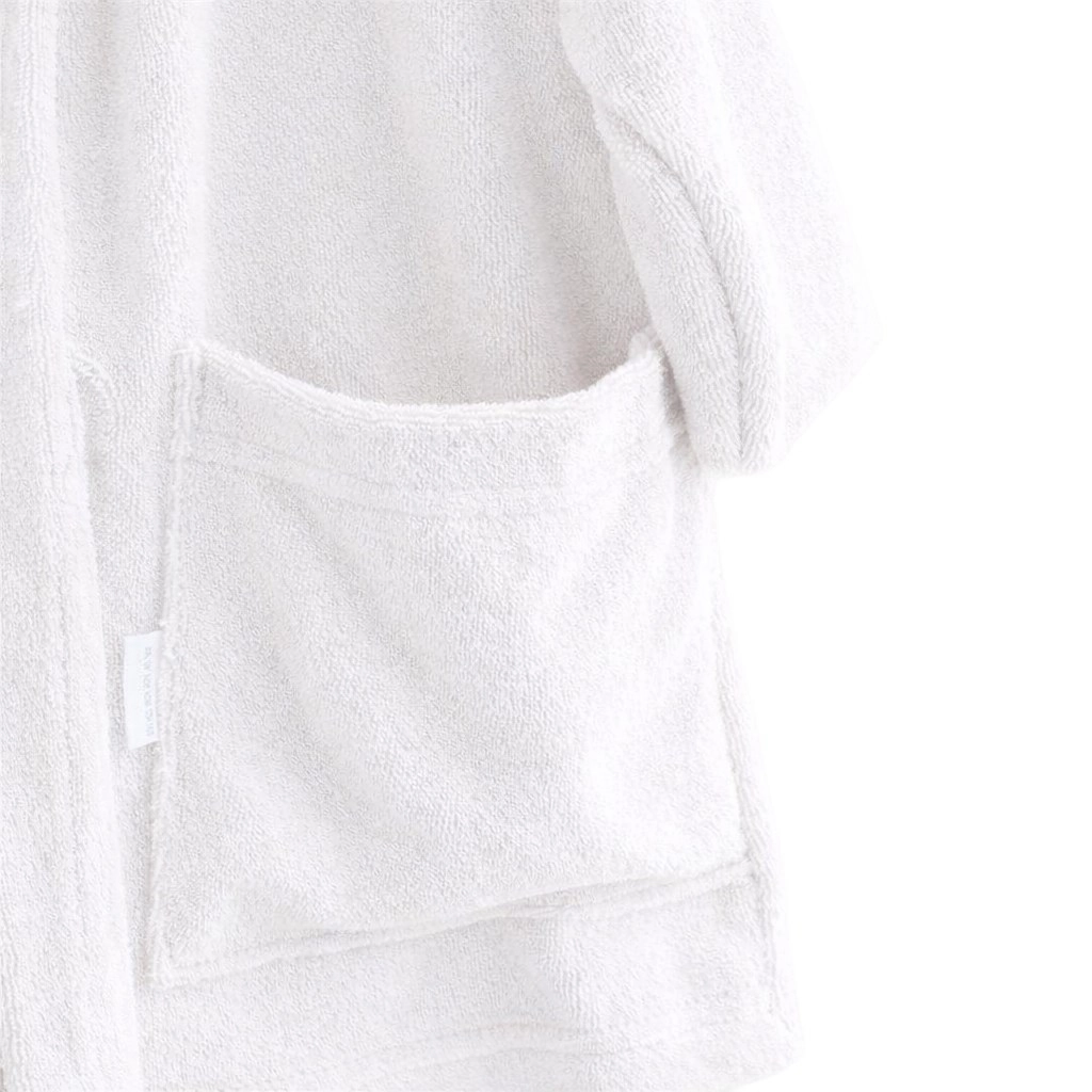 Halatul are curea cusută, astfel încât nu se pierde și nu incomodează la mers. Buzunarele mai adânci pot găzdui un șervețel, o jucărie mică sau un elastic de păr. Un însoțitor grozav nu doar pentru baie, ci și după înot la piscină sau la mare.