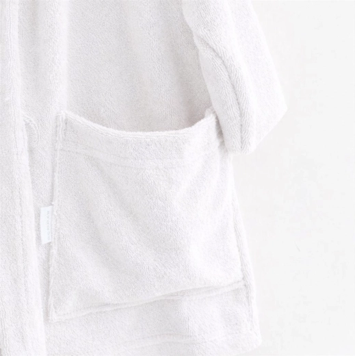 Halat de baie pentru copii New Baby, moale și călduros, din frotté de calitate, pentru confort zilnic după baie. Gluga protejează capul ud de frig, cureaua cusută nu se pierde, iar buzunarele adânci păstrează micile obiecte. Fabricat din 100% bumbac cu certificare OEKO-TEX STANDARD 100, gramaj 240 g/m². Mărimea 92/98, culoare albă.