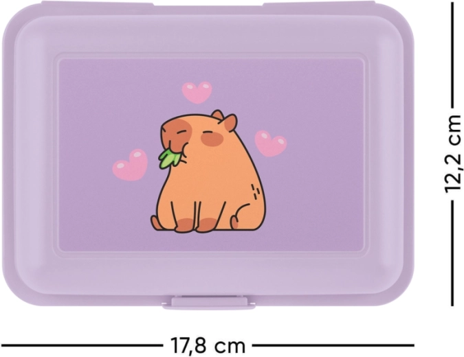 Căutați o cutie de gustare fiabilă pentru copii și adulți? Această cutie mov Baagl cu motiv Capibara oferă compartimentare practică și manevrare ușoară datorită închiderii cu un singur zăvor. Ideală pentru sandvișuri, fructe și gustări mai mici.