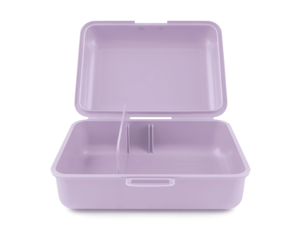 Cutie de gustare practică și rezistentă, în elegantul mov, cu motiv Capibara. Datorită închiderii simple cu o singură clapetă și separatorului interior, alimentele rămân clar separate și proaspete. O alegere excelentă pentru școală, excursii și uz zilnic.