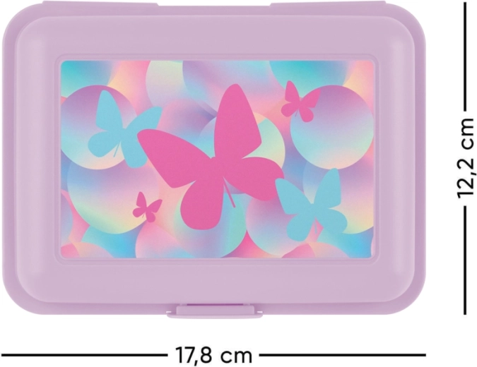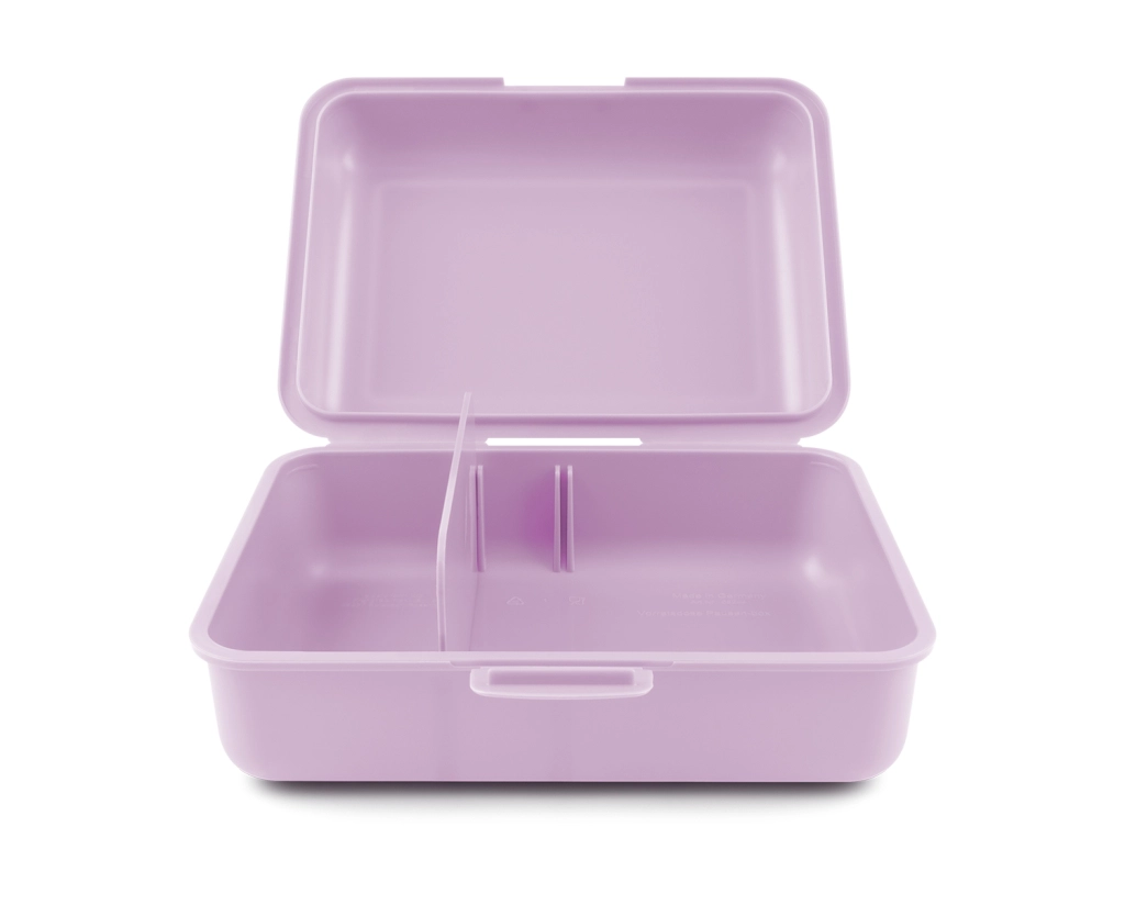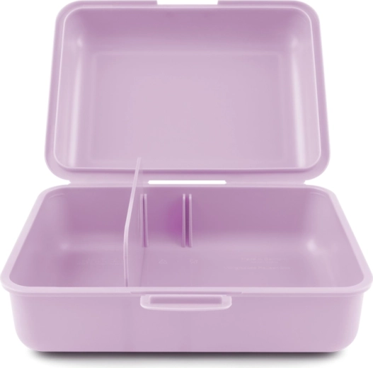 Cutia practică pentru gustare, în nuanță elegantă de mov de la BAAGL, este ideală pentru școală și călătorii. Oferă execuție durabilă din plastic, închidere cu o singură clapetă pentru manipulare ușoară și separator interior pentru organizarea clară a alimentelor. Nu este recomandată spălarea în mașina de spălat vase.